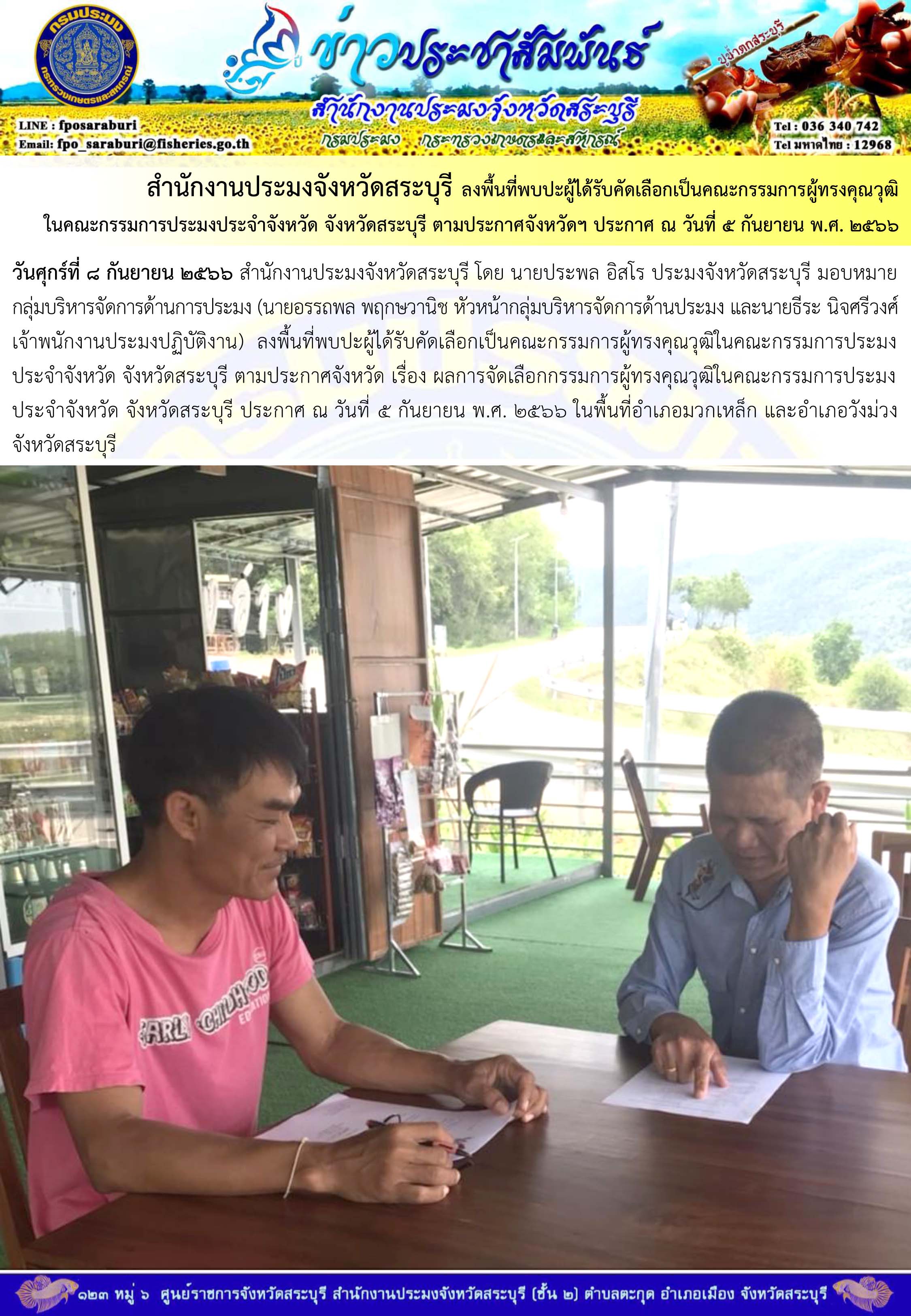 ภารกิจประจำวันที่ 8 กันยายน 2566 สำนักงานประมงจังหวัดสระบุรี..คลิก
