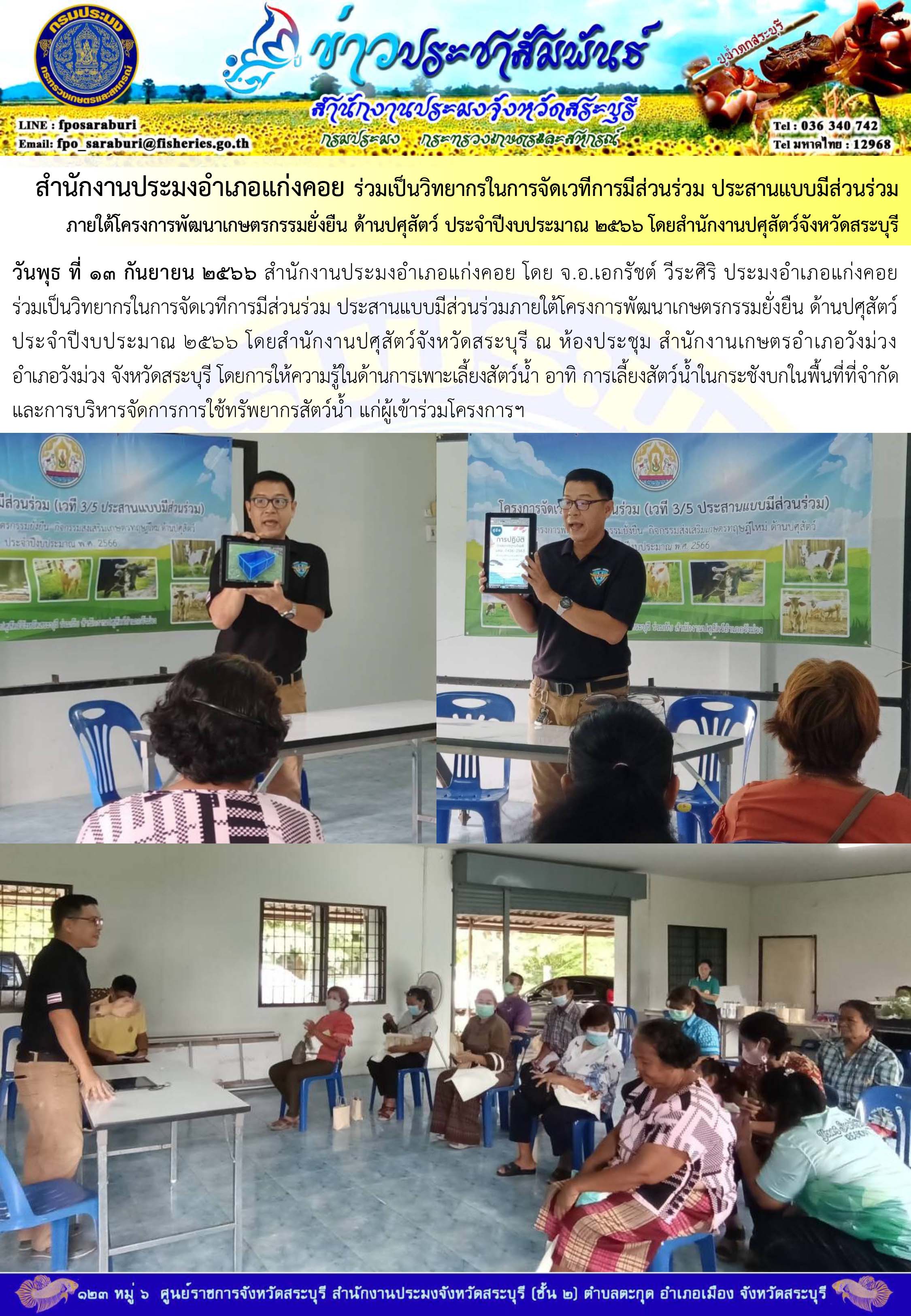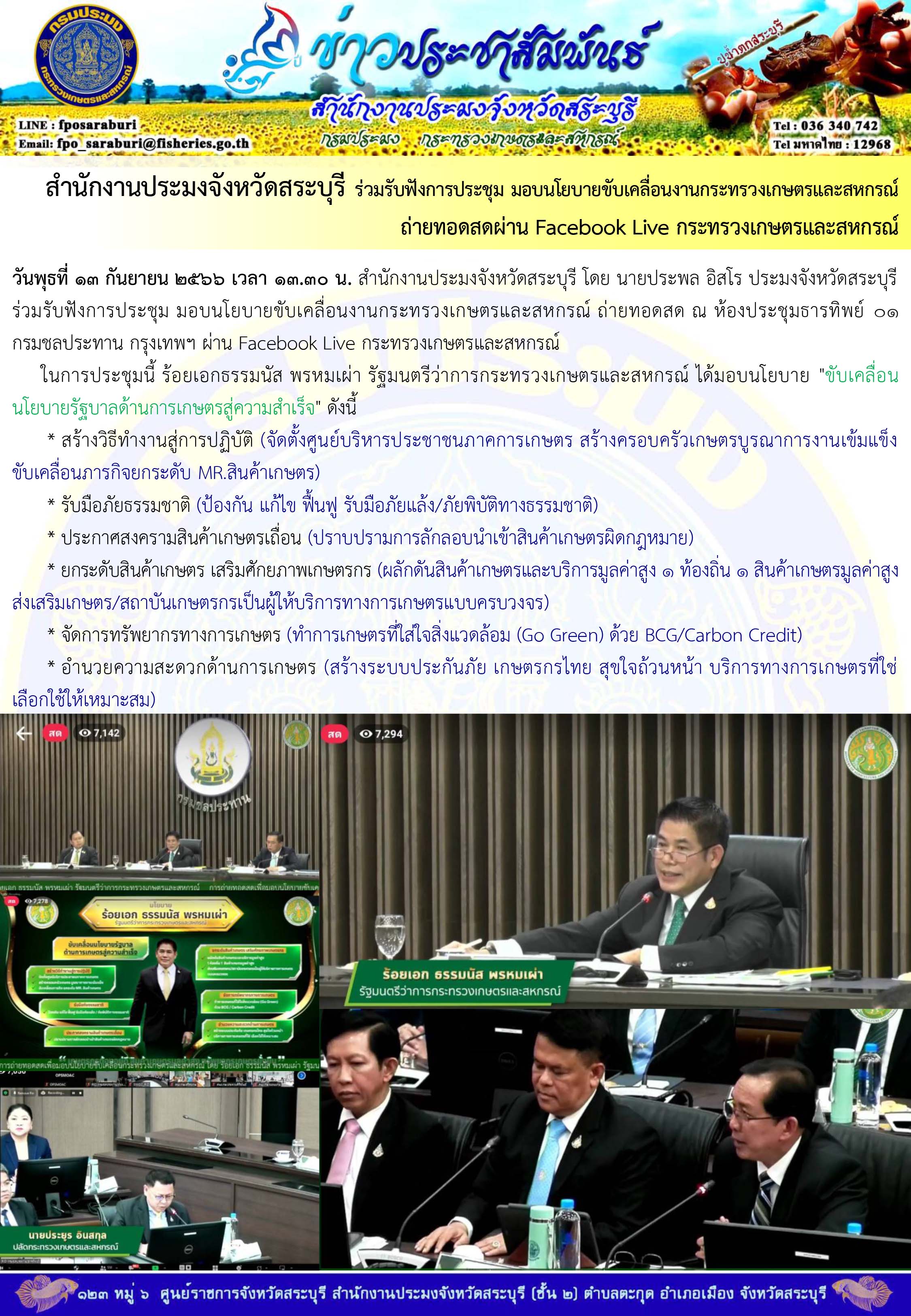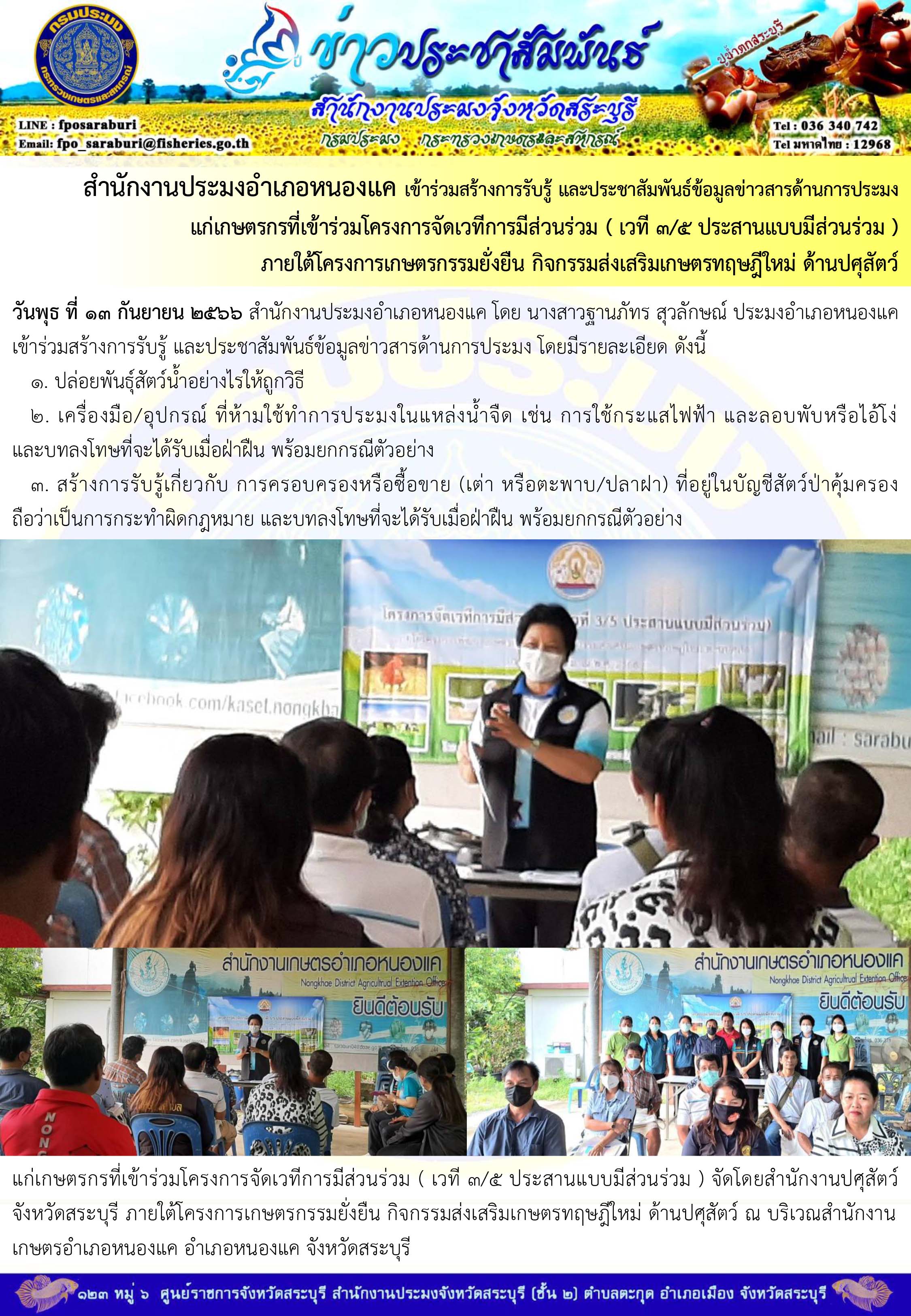 ภารกิจประจำวันที่ 13 กันยายน 2566 สำนักงานประมงจังหวัดสระบุรี..คลิก