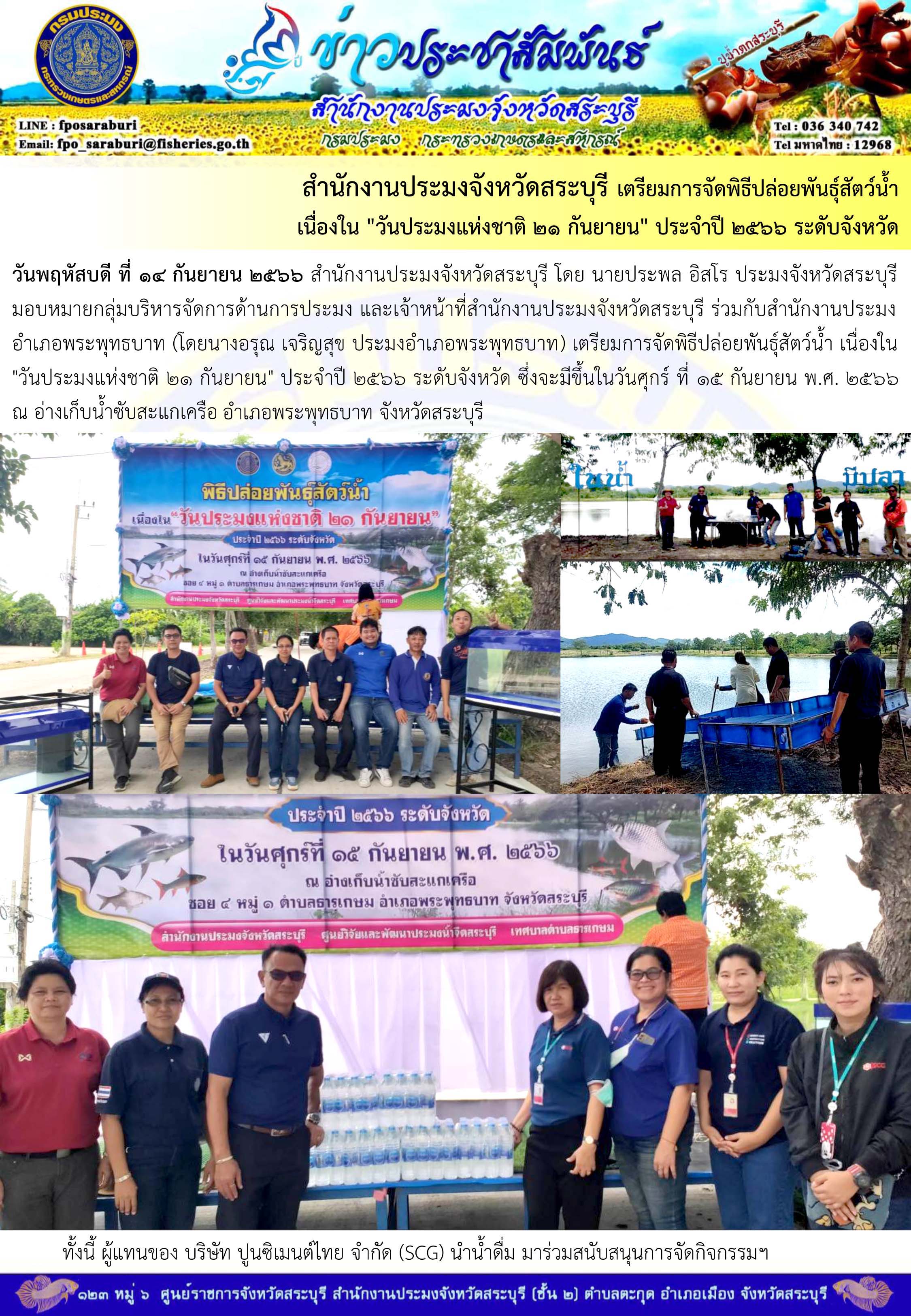 ภารกิจประจำวันที่ 14 กันยายน 2566 สำนักงานประมงจังหวัดสระบุรี
