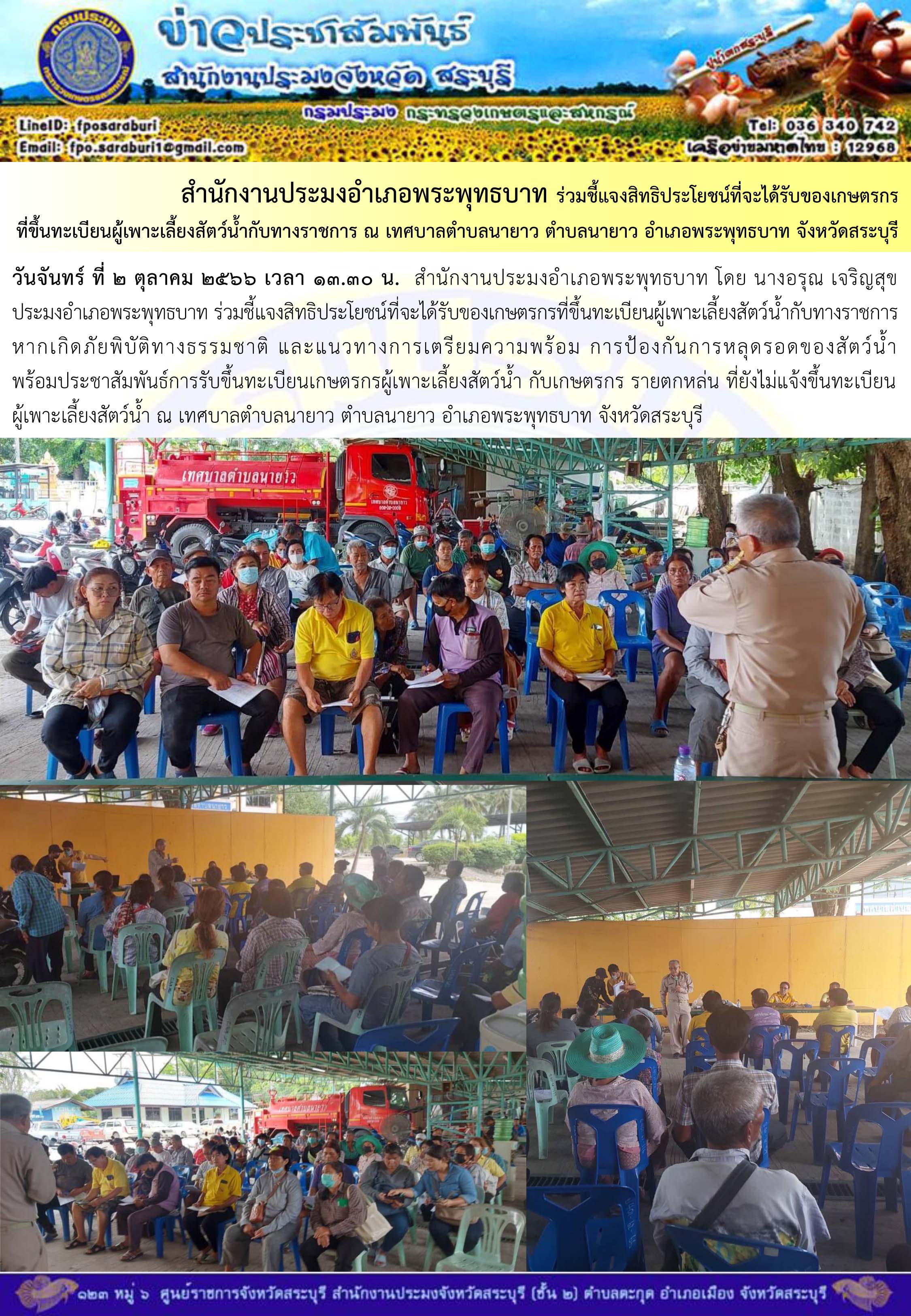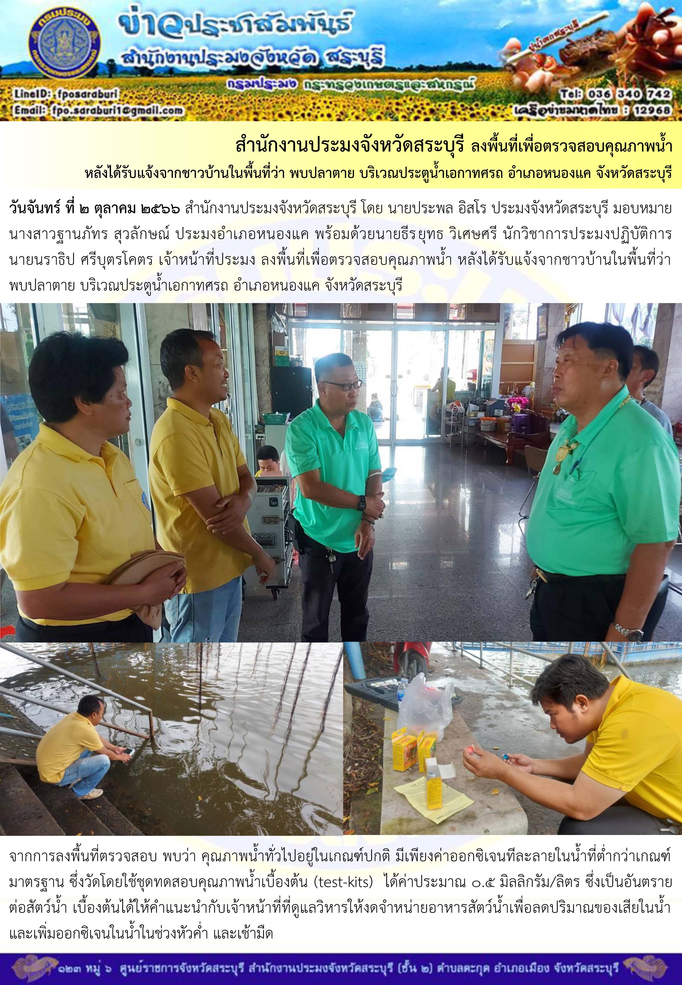 ภารกิจประจำวันที่ 2 ตุลาคม 2566 สำนักงานประมงจังหวัดสระบุรี