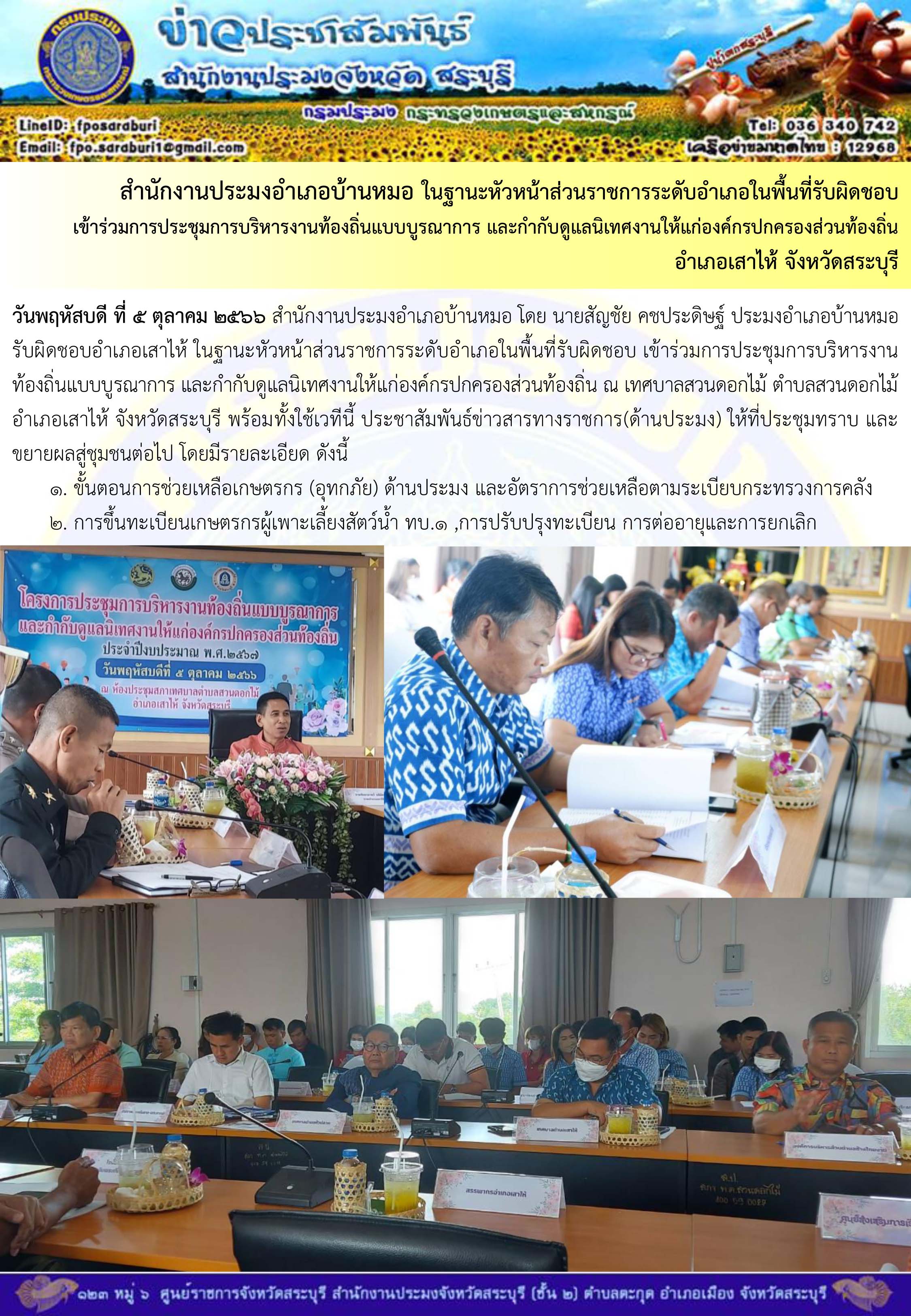 ภารกิจประจำวันที่ 5 ตุลาคม 2566 สำนักงานประมงจังหวัดสระบุรี..คลิก