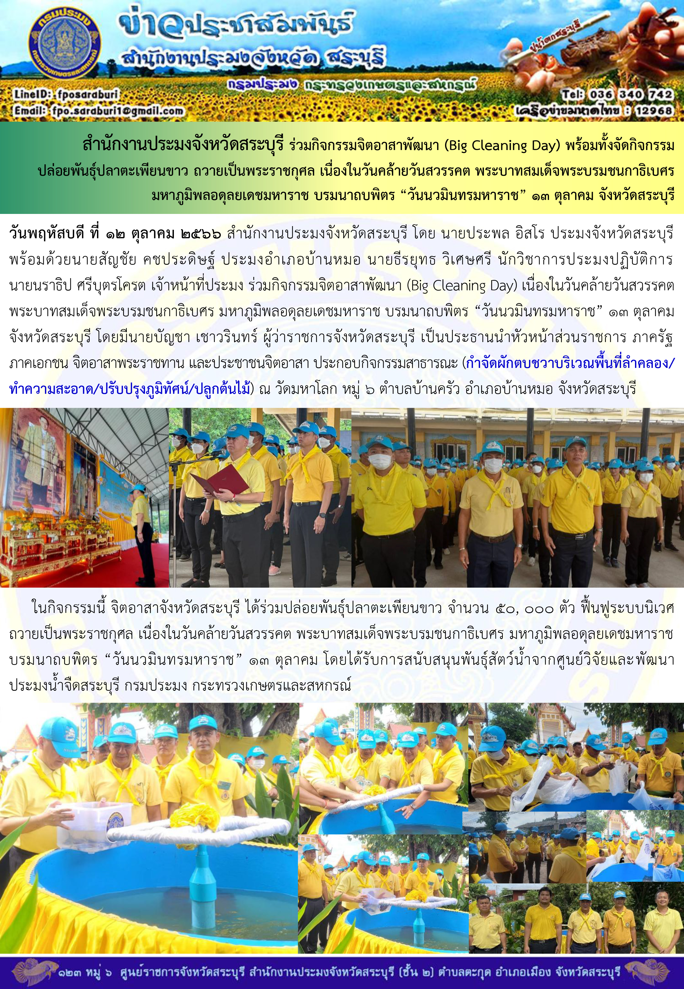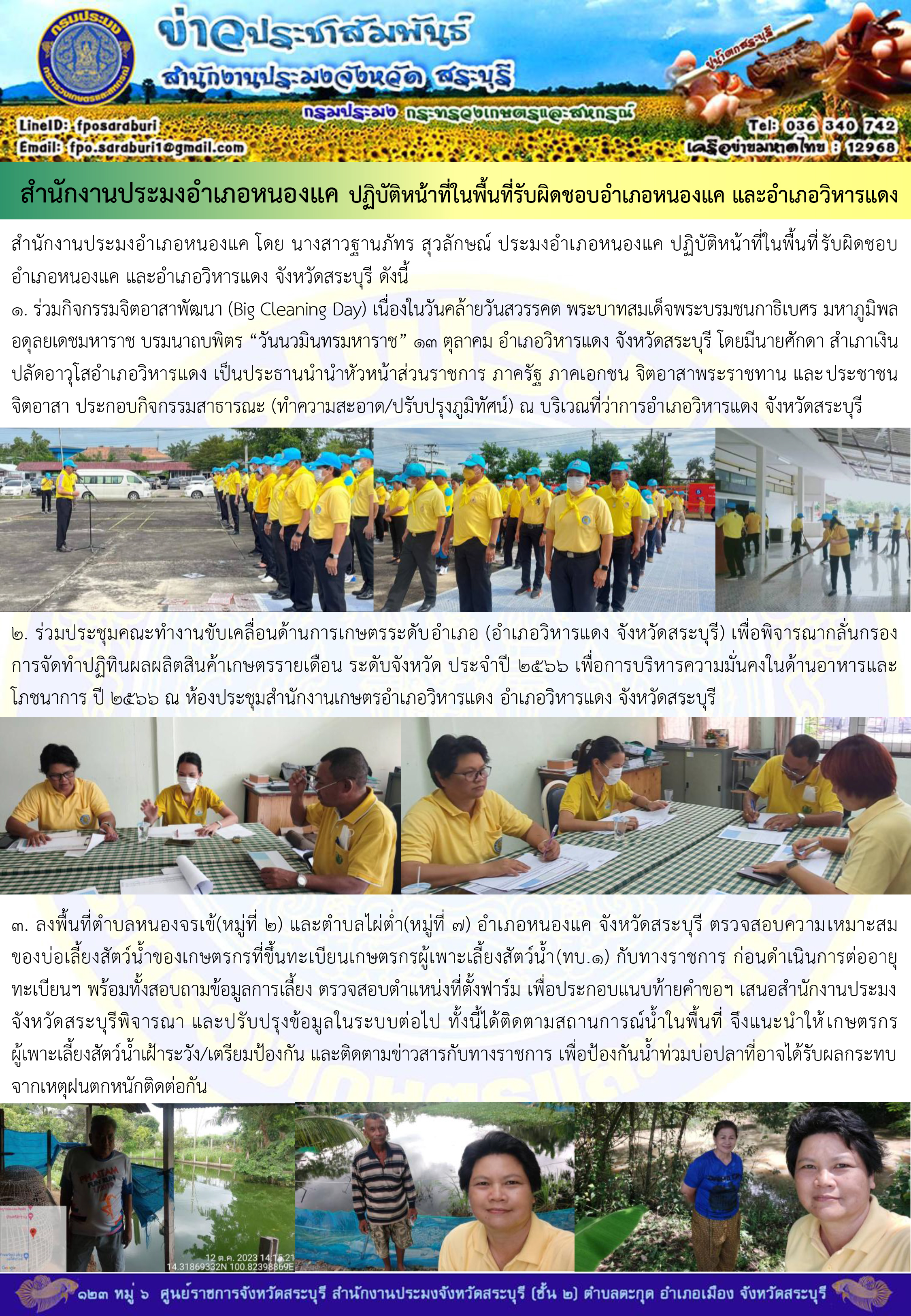 ภารกิจประจำวันที่ 12 ตุลาคม 2566 สำนักงานประมงจังหวัดสระบุรี..คลิก