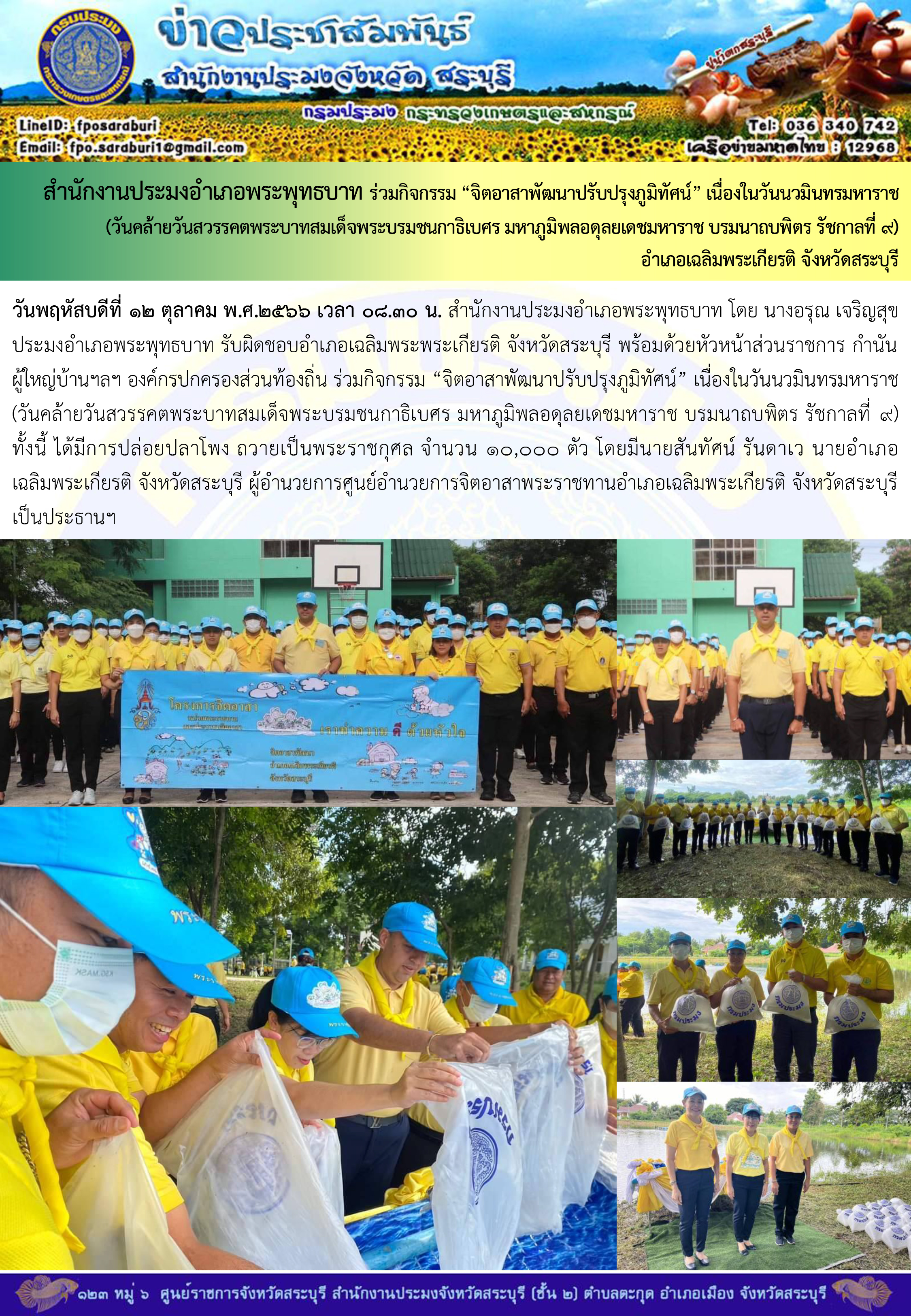 ภารกิจประจำวันที่ 12 ตุลาคม 2566 สำนักงานประมงจังหวัดสระบุรี