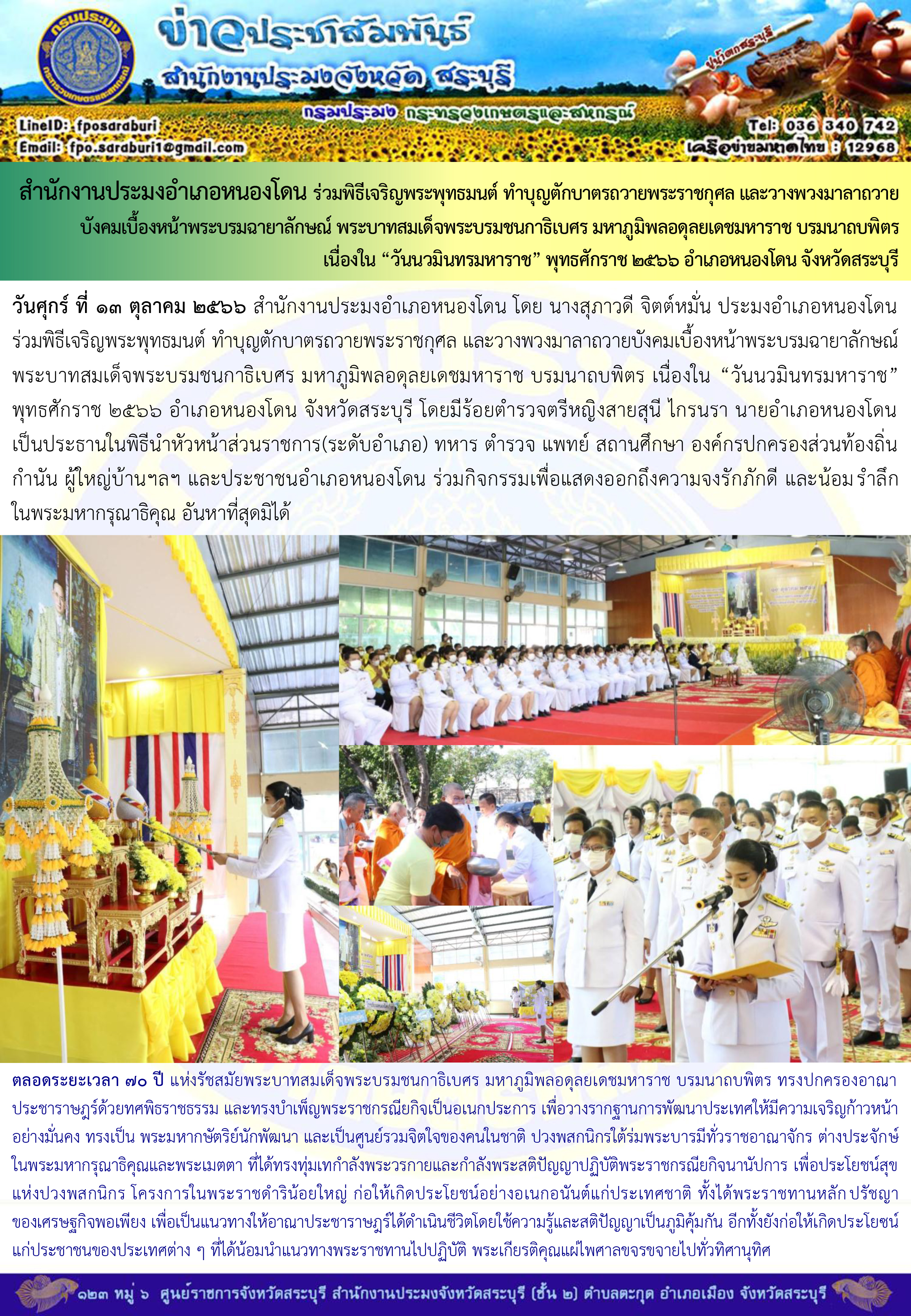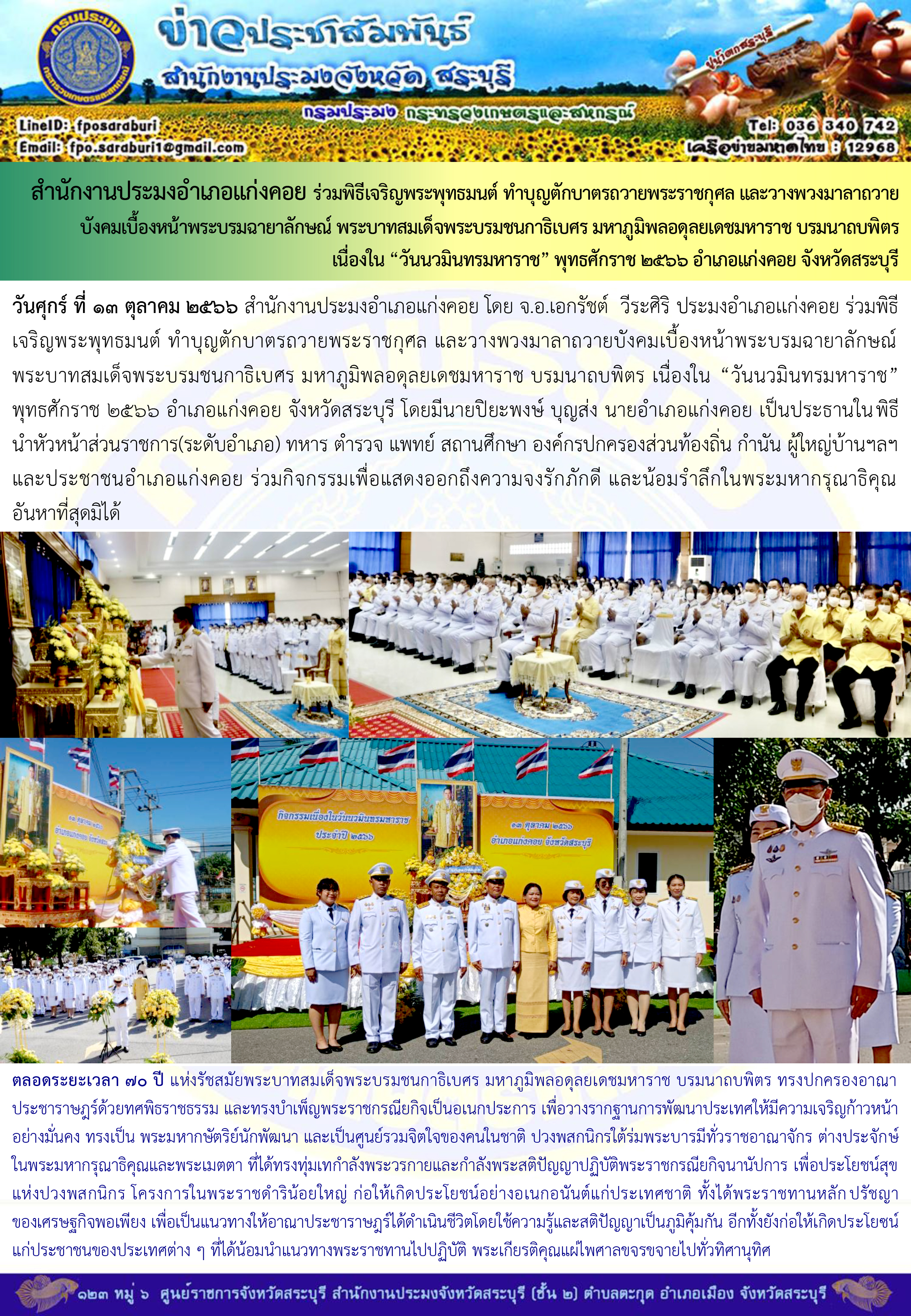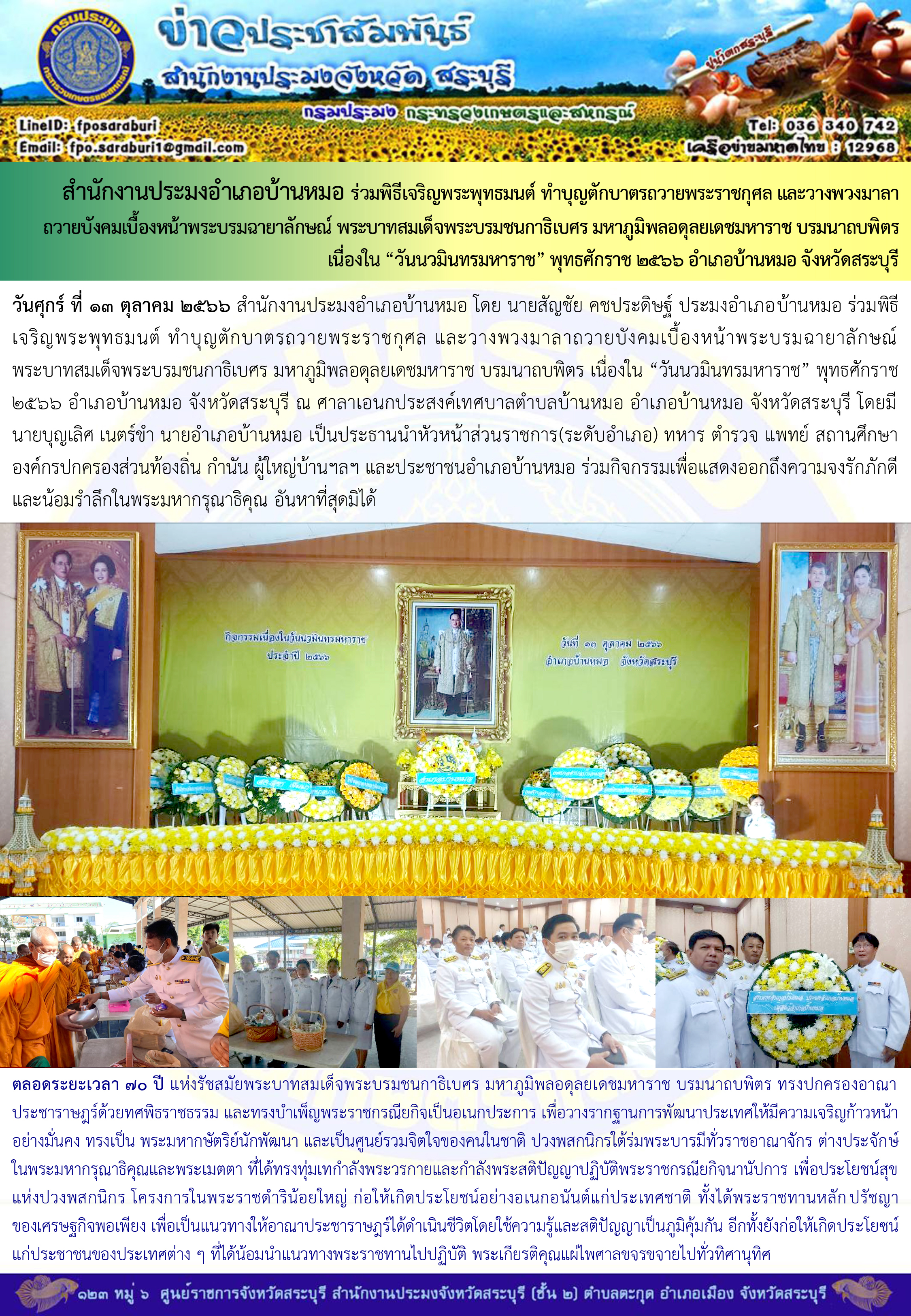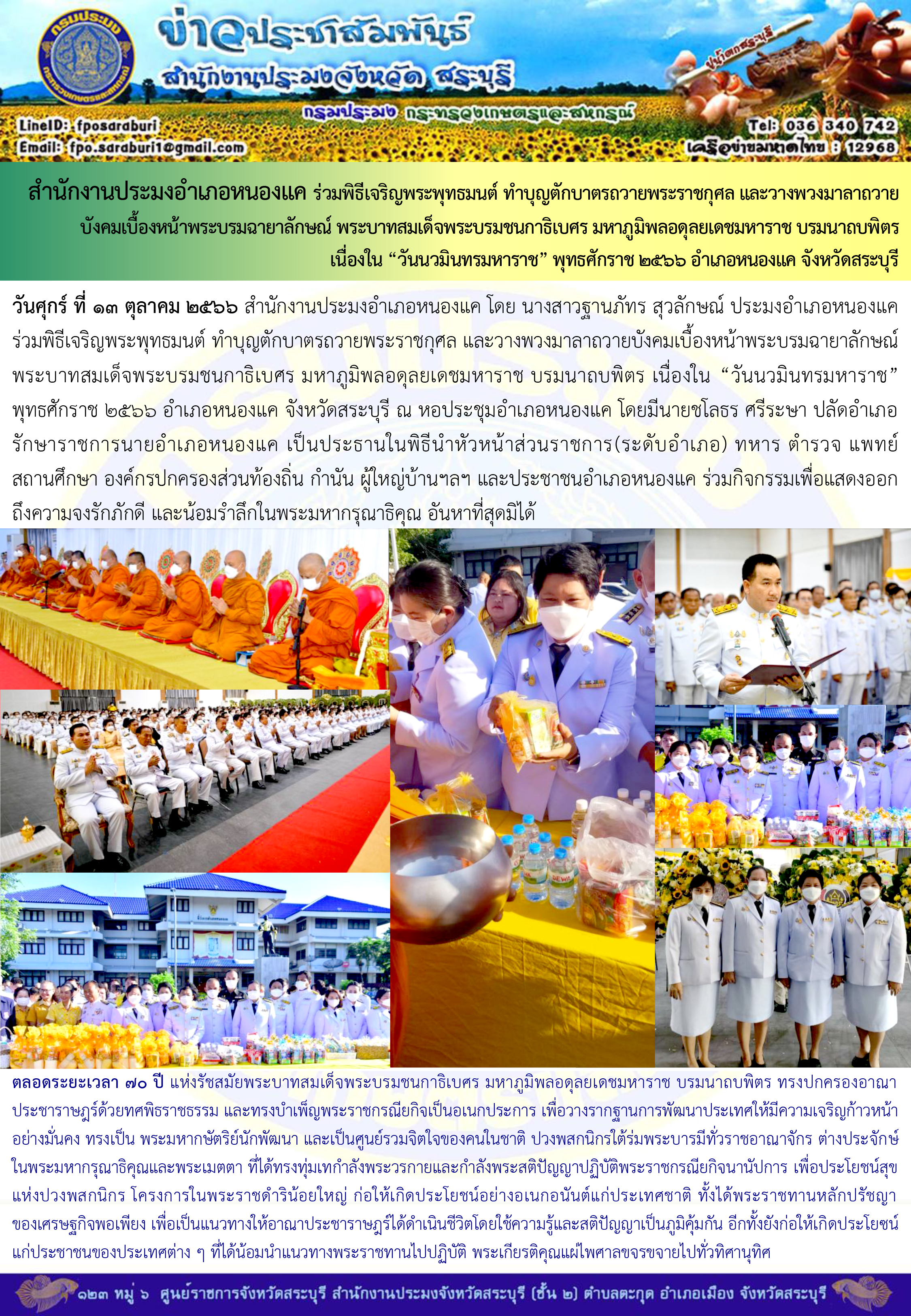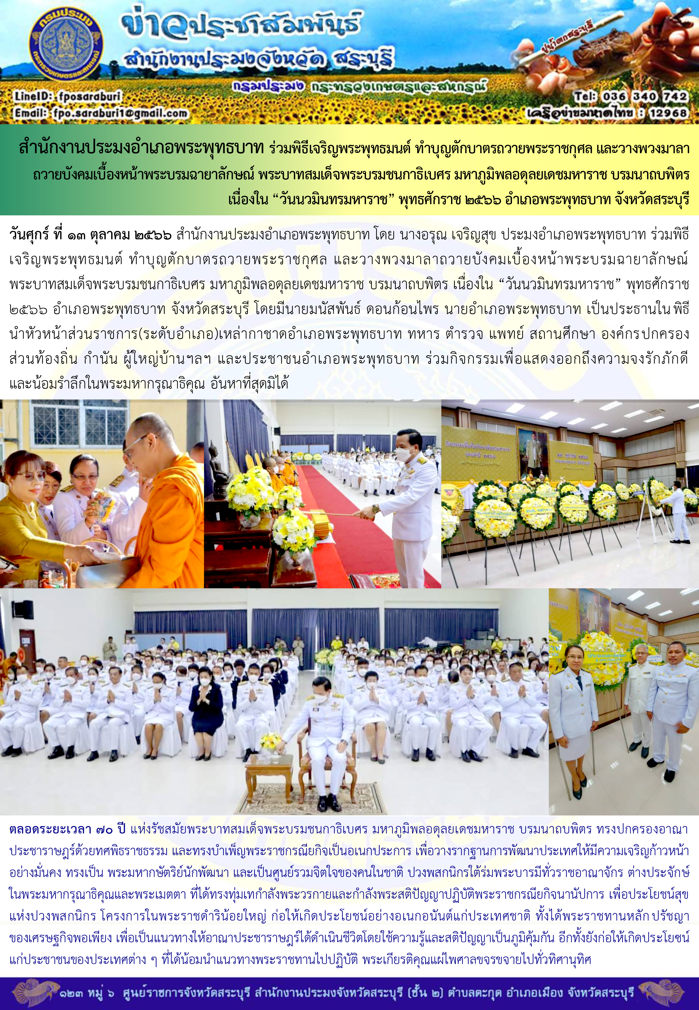 ภารกิจประจำวันที่ 13 ตุลาคม 2566 สำนักงานประมงจังหวัดสระบุรี..คลิก