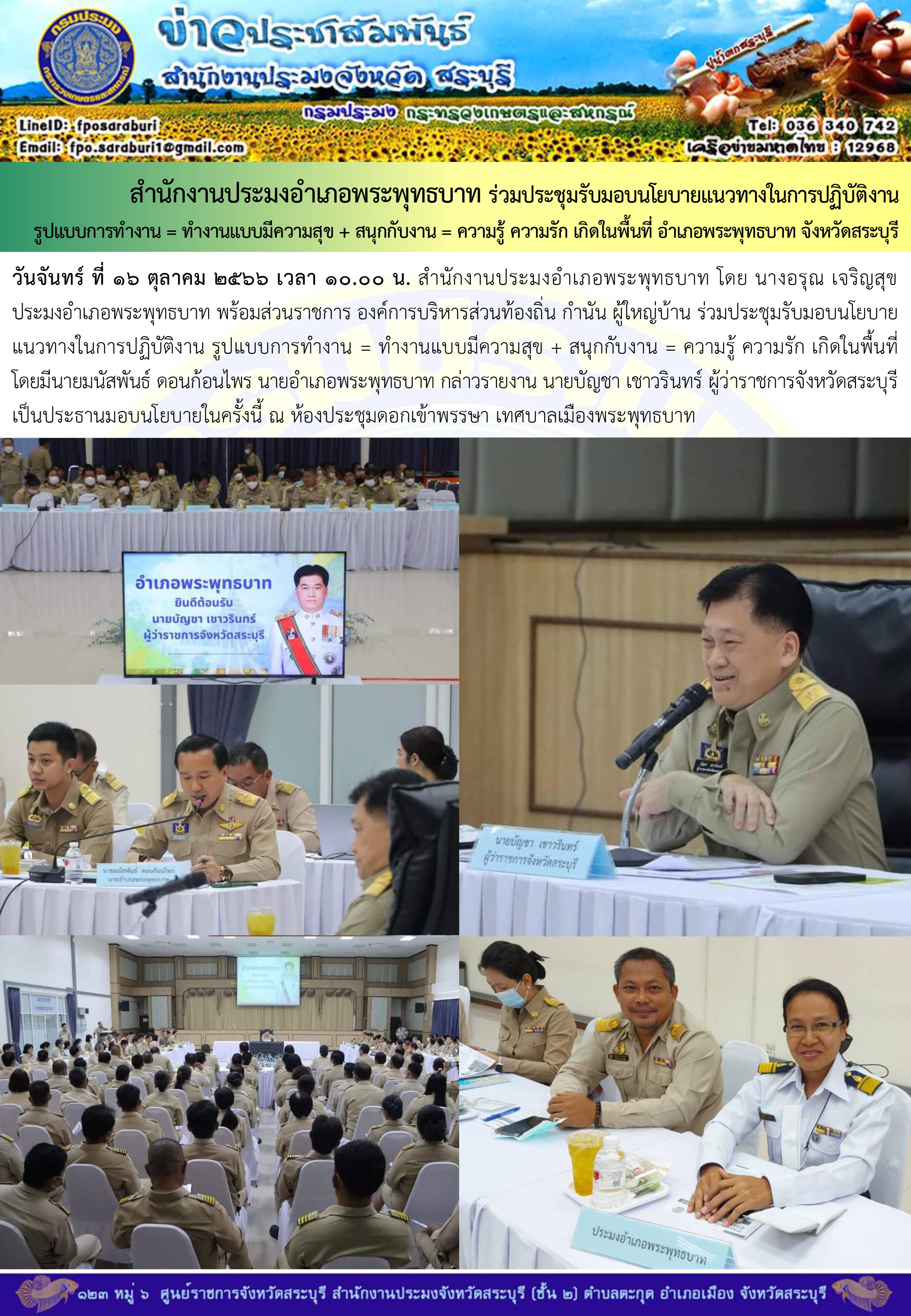 ภารกิจประจำวันที่ 16 ตุลาคม 2566 สำนักงานประมงจังหวัดสระบุรี..คลิก
