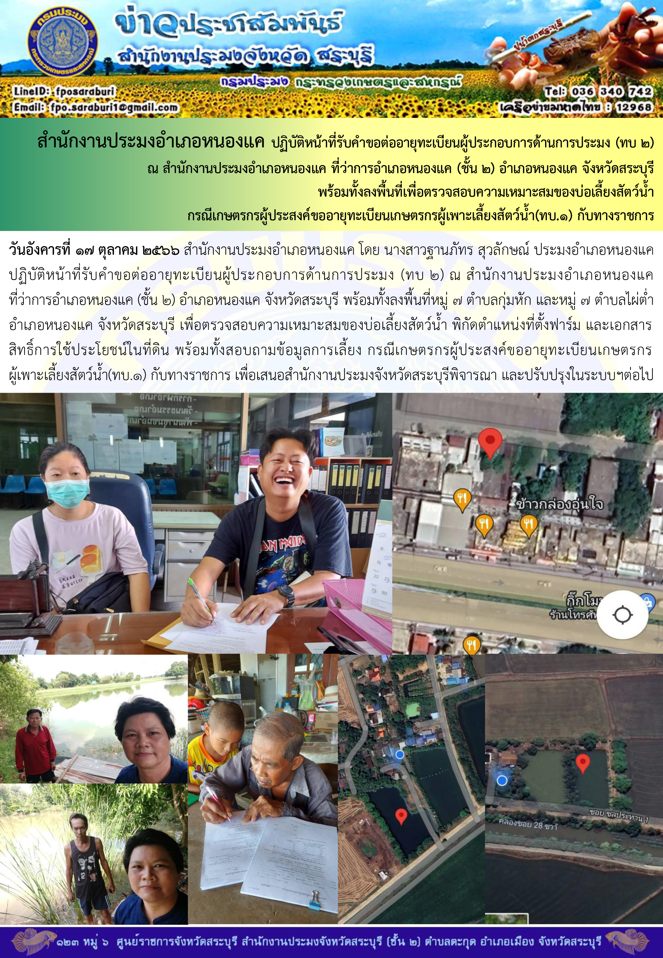 ภารกิจประจำวันที่ 17 ตุลาคม 2566 สำนักงานประมงจังหวัดสระบุรี