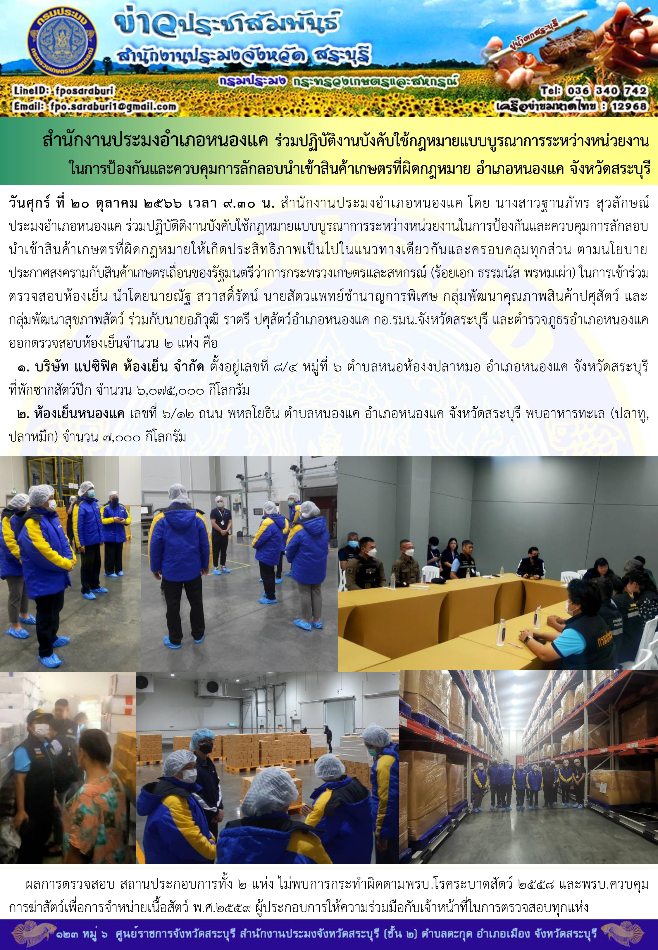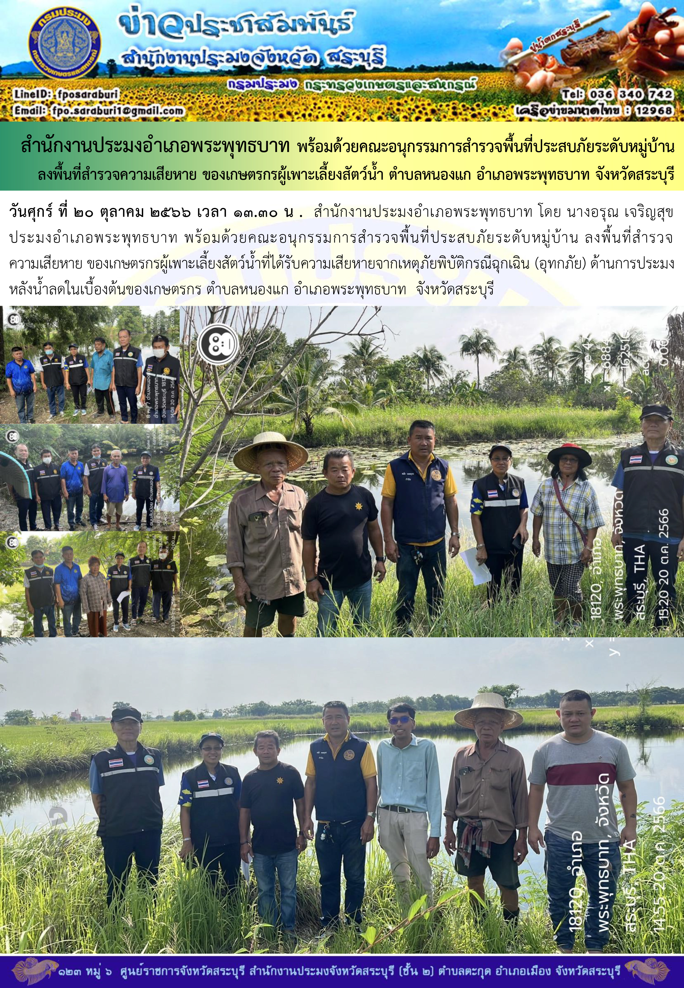 ภารกิจประจำวันที่ 20 ตุลาคม 2566 สำนักงานประมงจังหวัดสระบุรี