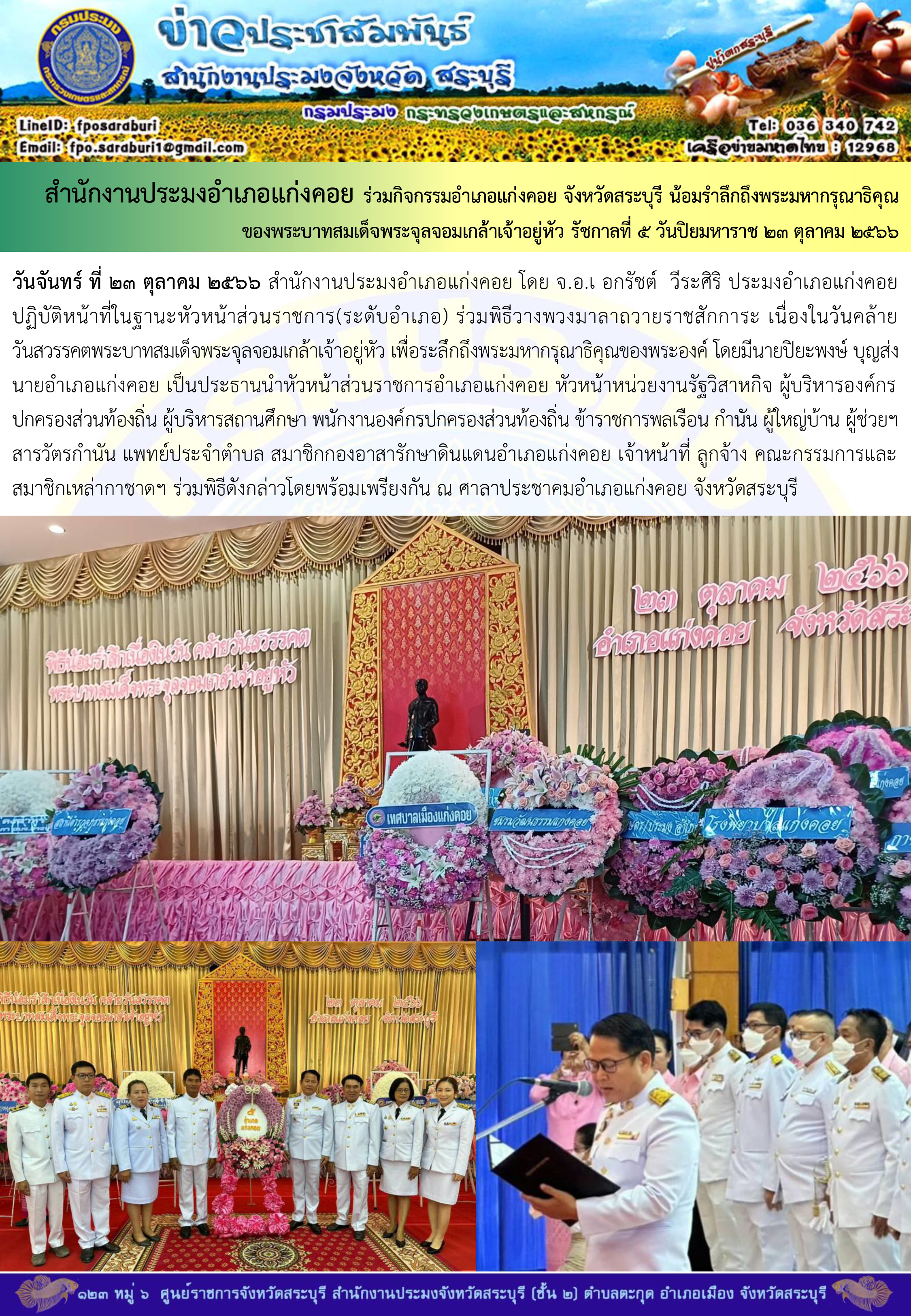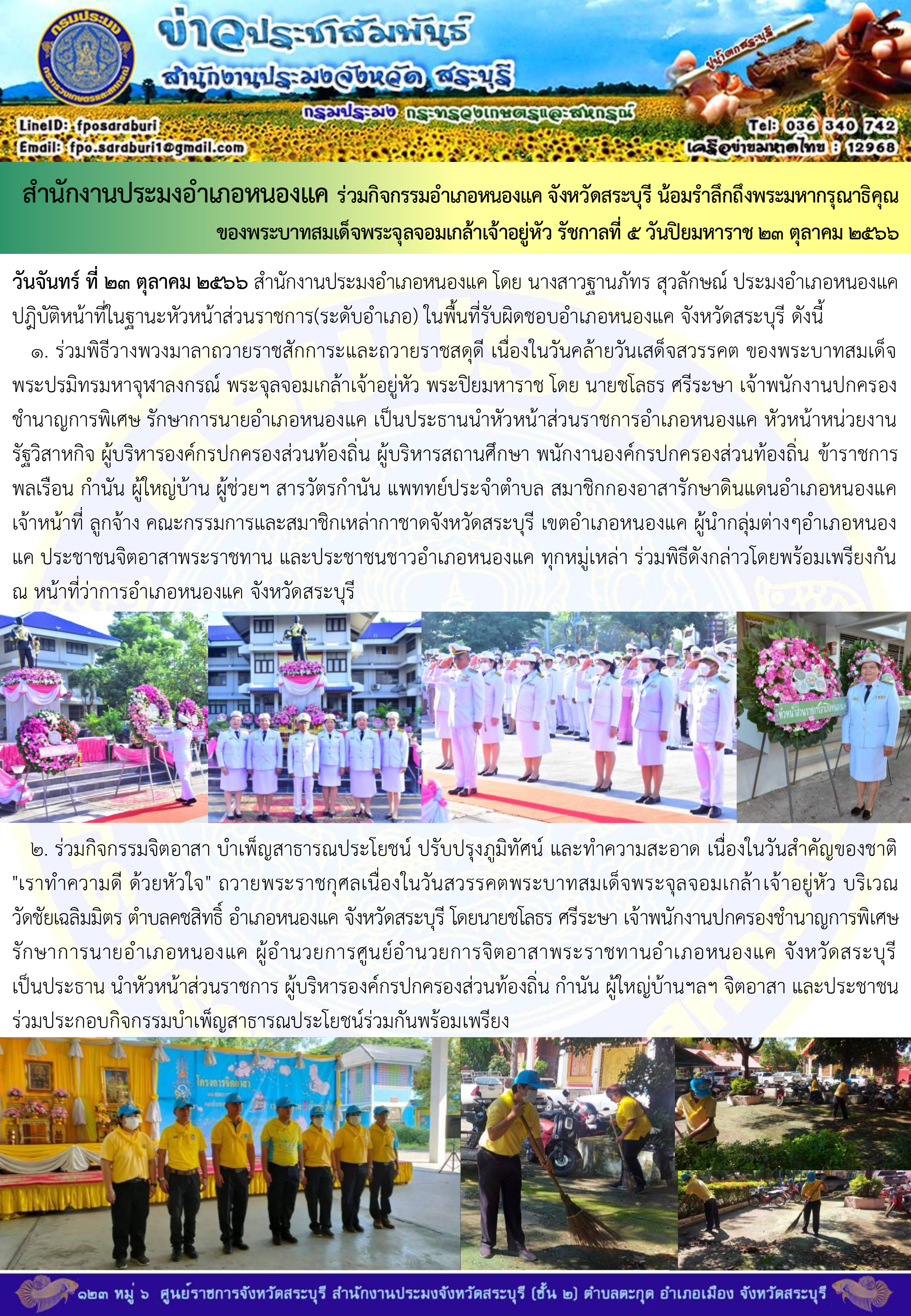 ภารกิจประจำวันที่ 23 ตุลาคม 2566 สำนักงานประมงจังหวัดสระบุรี..คลิก