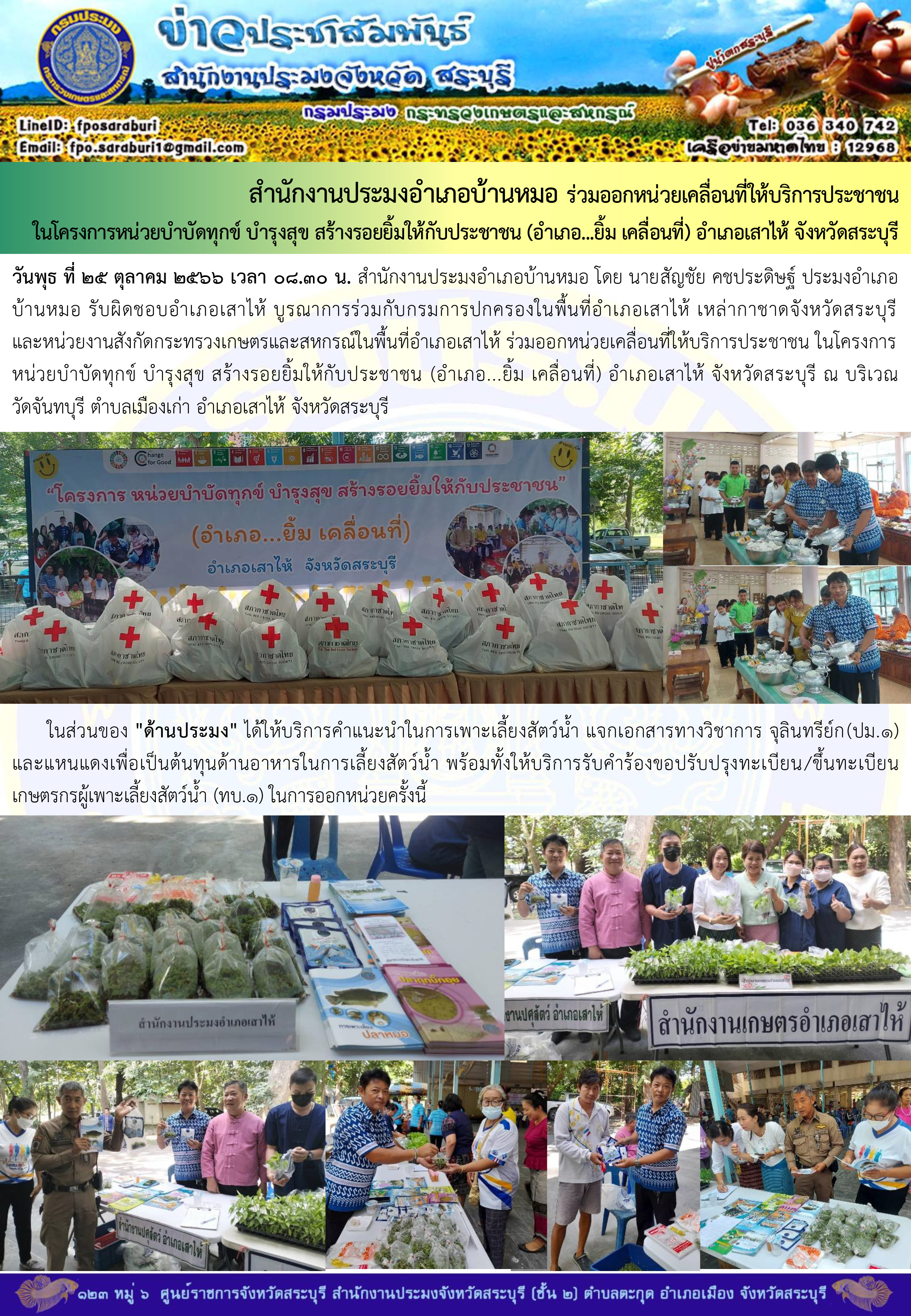 ภารกิจประจำวันที่ 25 ตุลาคม 2566 สำนักงานประมงจังหวัดสระบุรี