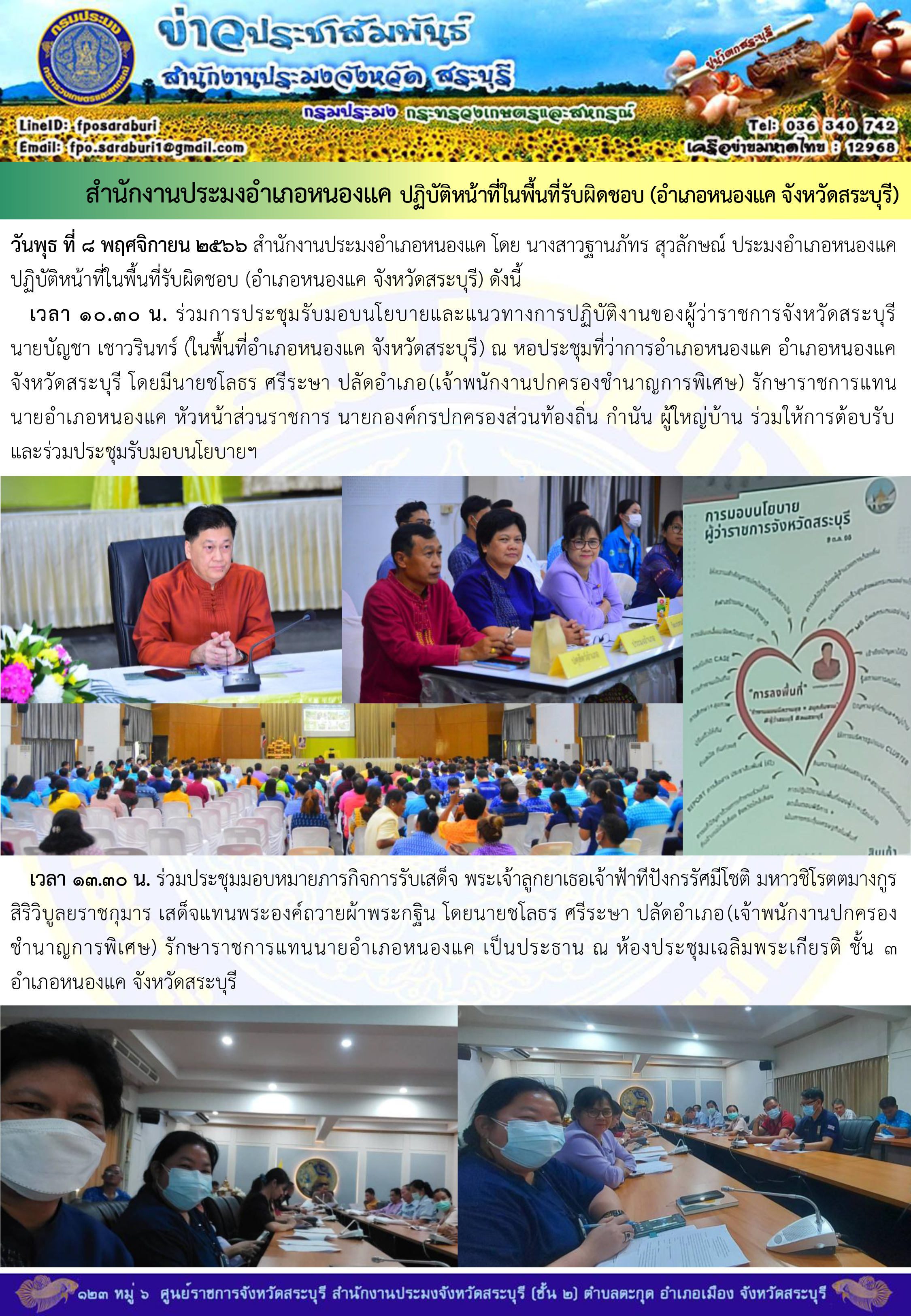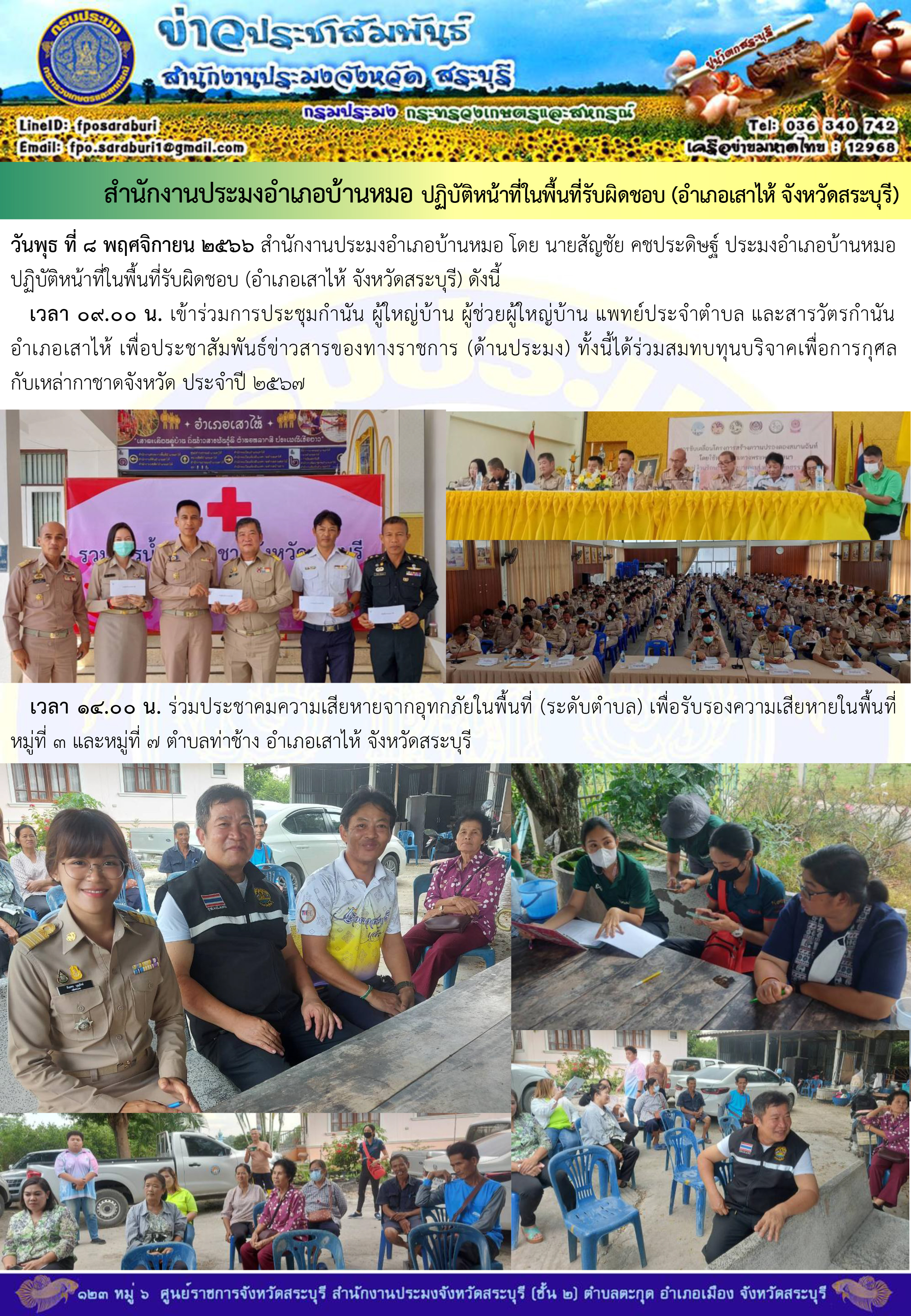 ภารกิจประจำวันที่ 8 พฤศจิกายน 2566 สำนักงานประมงจังหวัดสระบุรี..คลิก