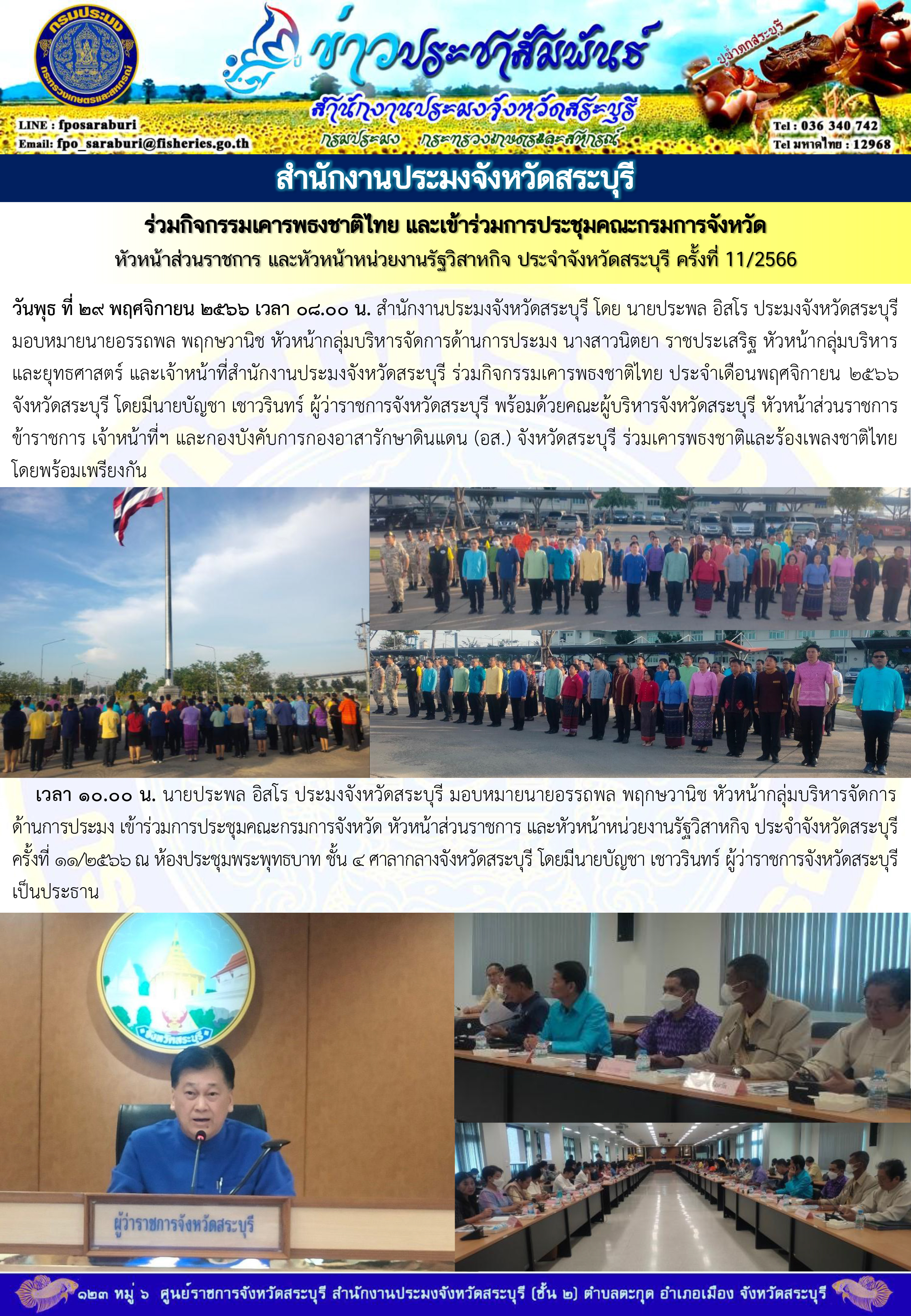 ภารกิจประจำวันที่ 29 พฤศจิกายน 2566 สำนักงานประมงจังหวัดสระบุรี