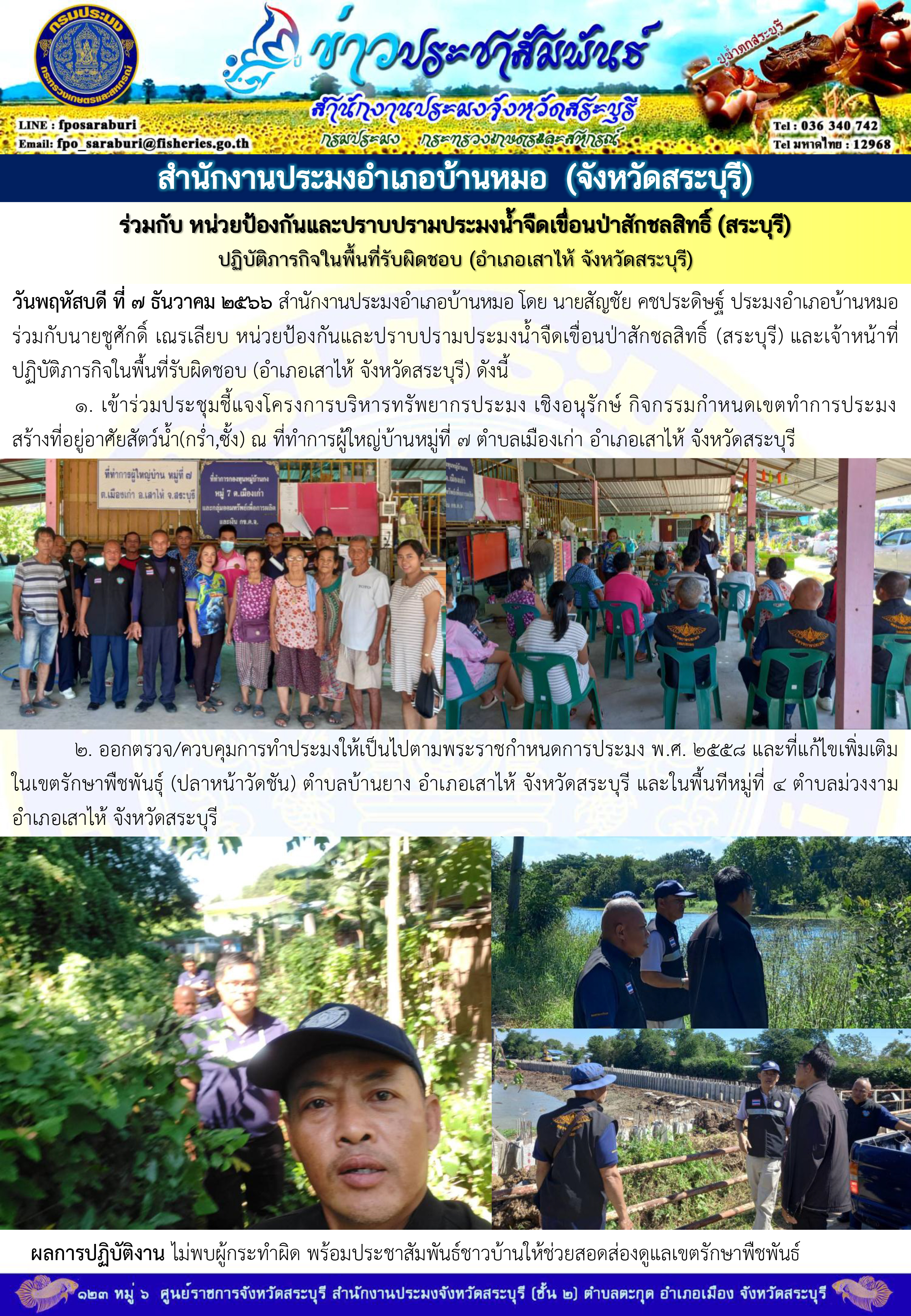 ภารกิจประจำวันที่ 7 ธันวาคม 2566 สำนักงานประมงจังหวัดสระบุรี