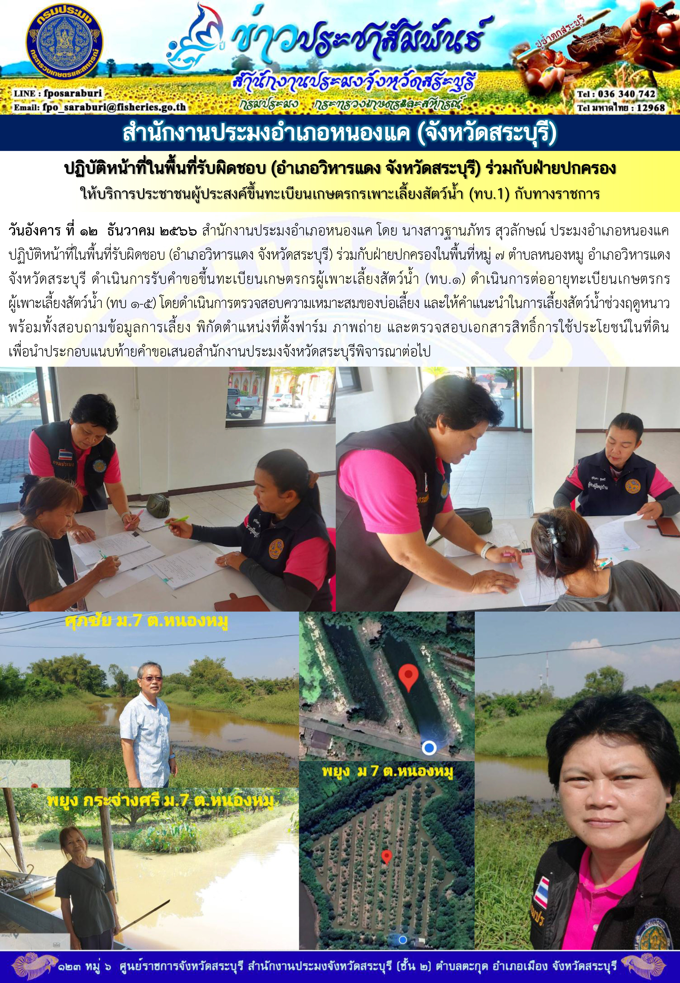 ภารกิจประจำวันที่ 12 ธันวาคม 2566 สำนักงานประมงจังหวัดสระบุรี