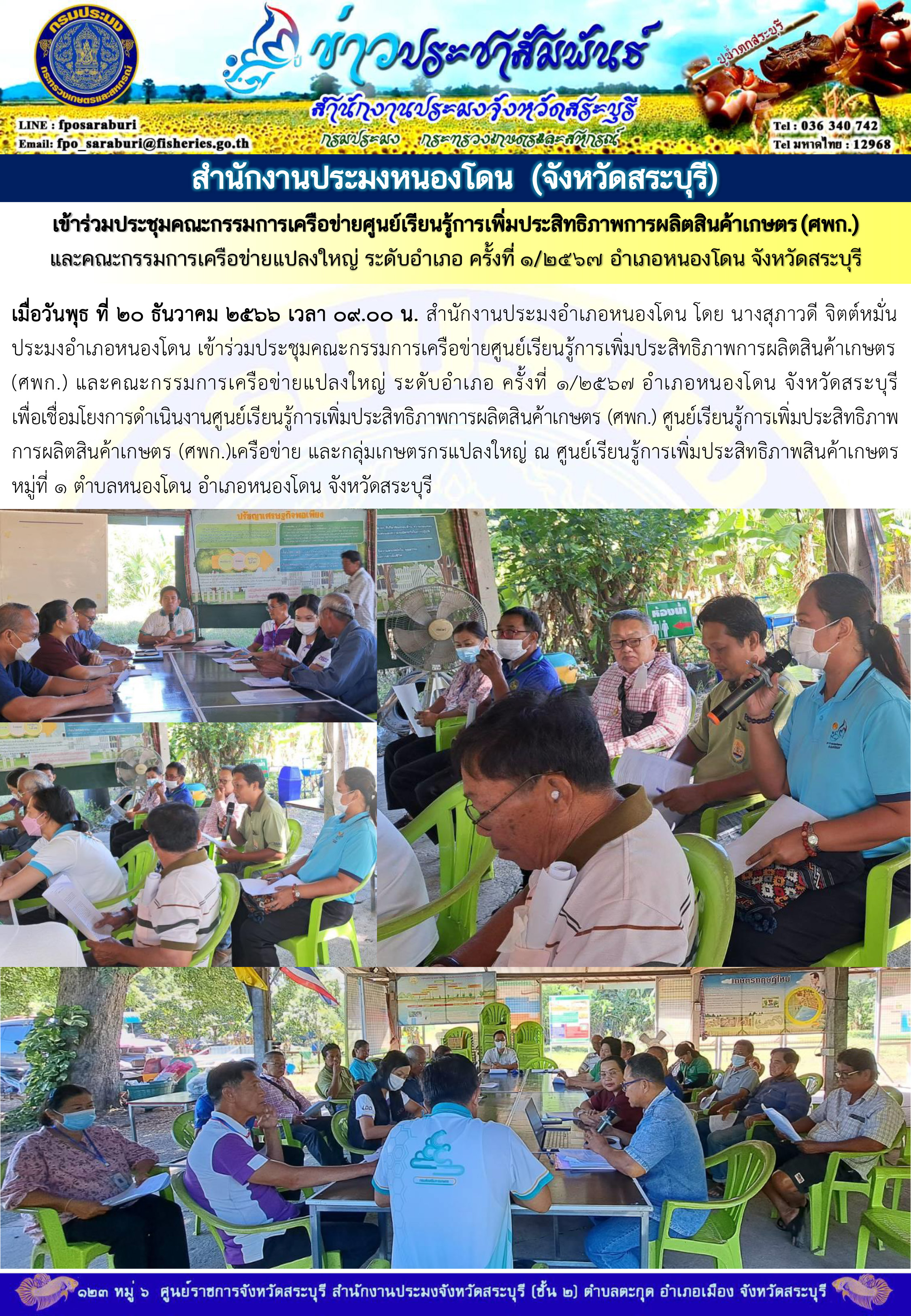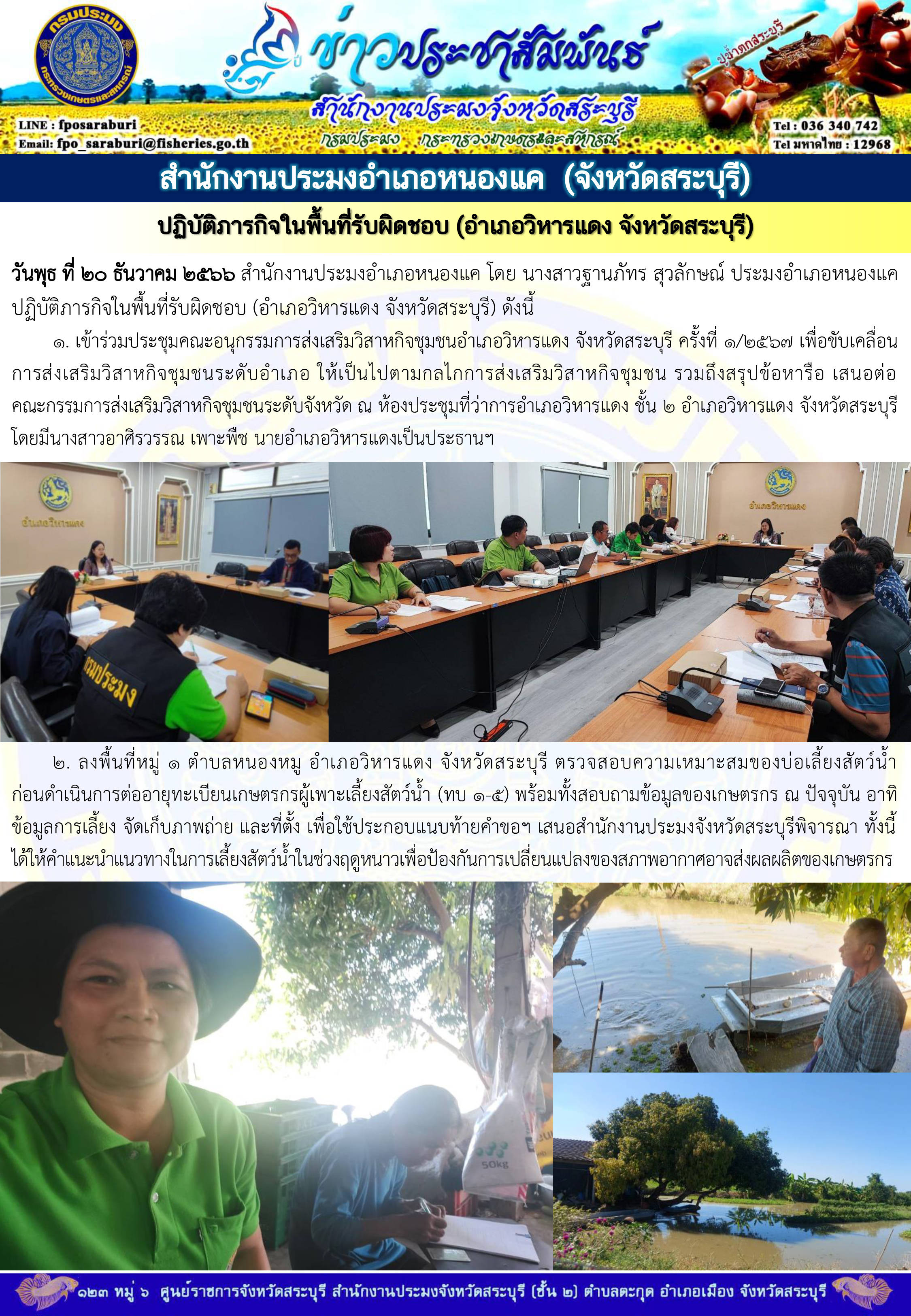 ภารกิจประจำวันที่ 20 ธันวาคม 2566 สำนักงานประมงจังหวัดสระบุรี