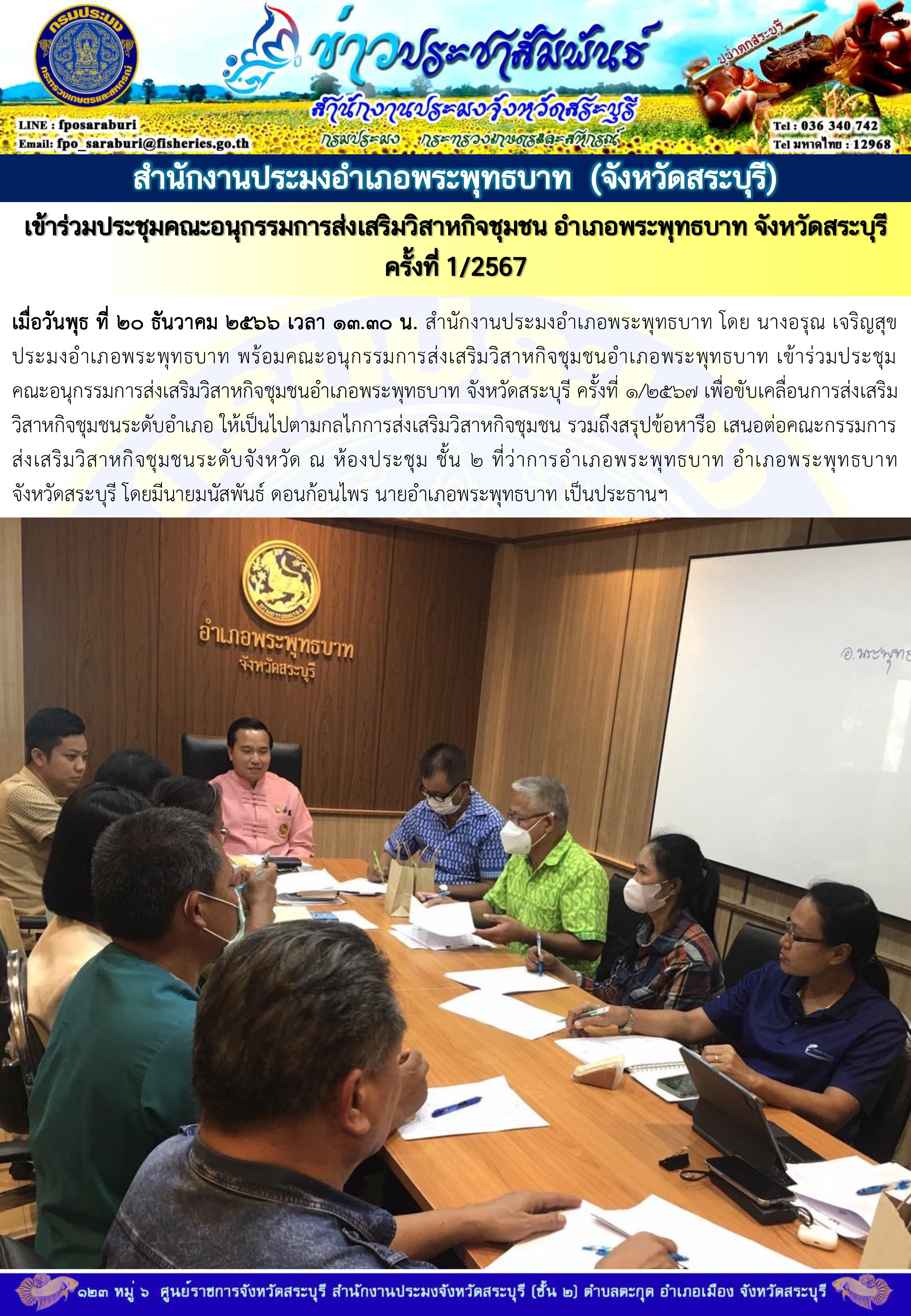 ภารกิจประจำวันที่ 20 ธันวาคม 2566 สำนักงานประมงจังหวัดสระบุรี..คลิก
