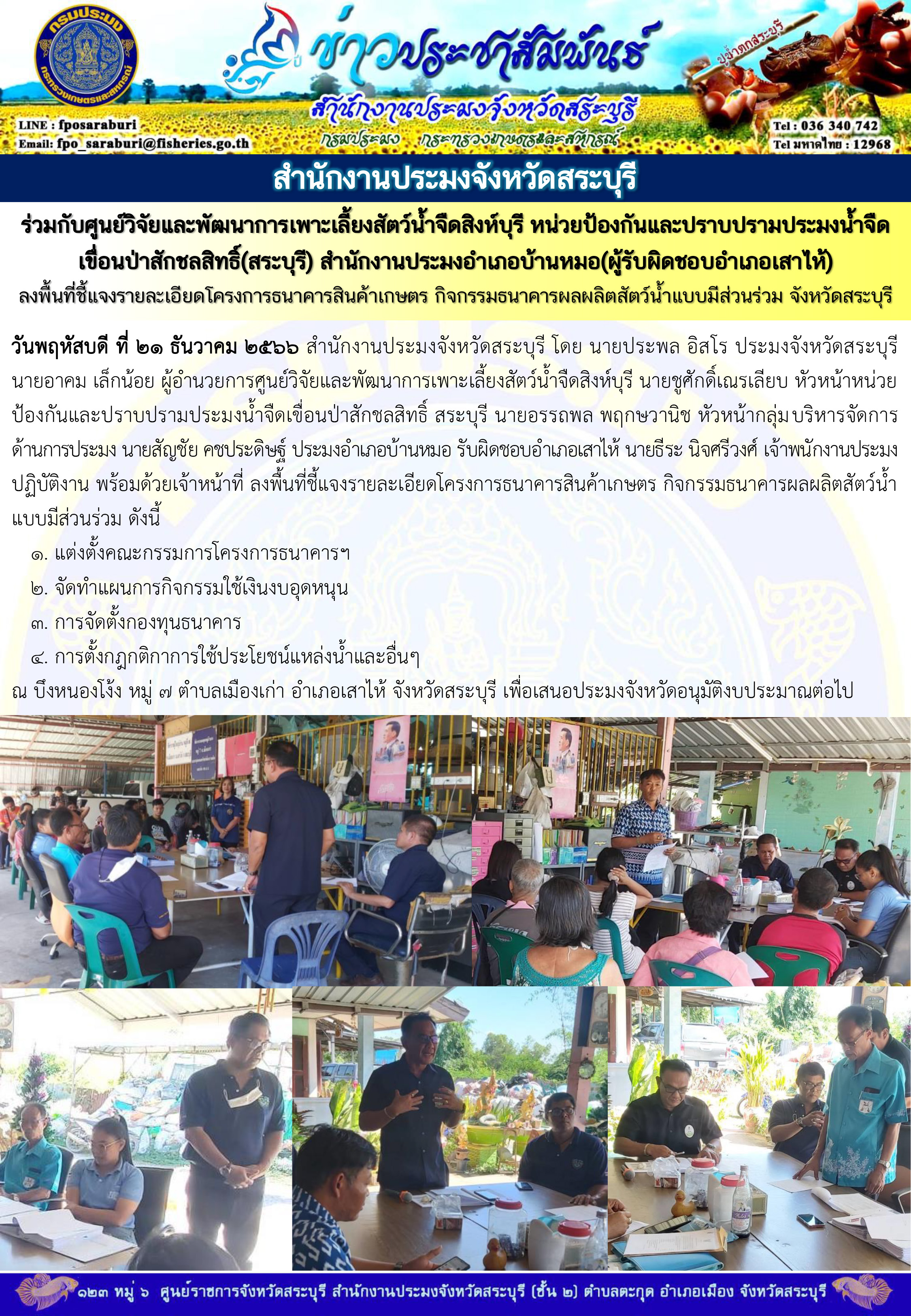 ภารกิจประจำวันที่ 21 ธันวาคม 2566 สำนักงานประมงจังหวัดสระบุรี
