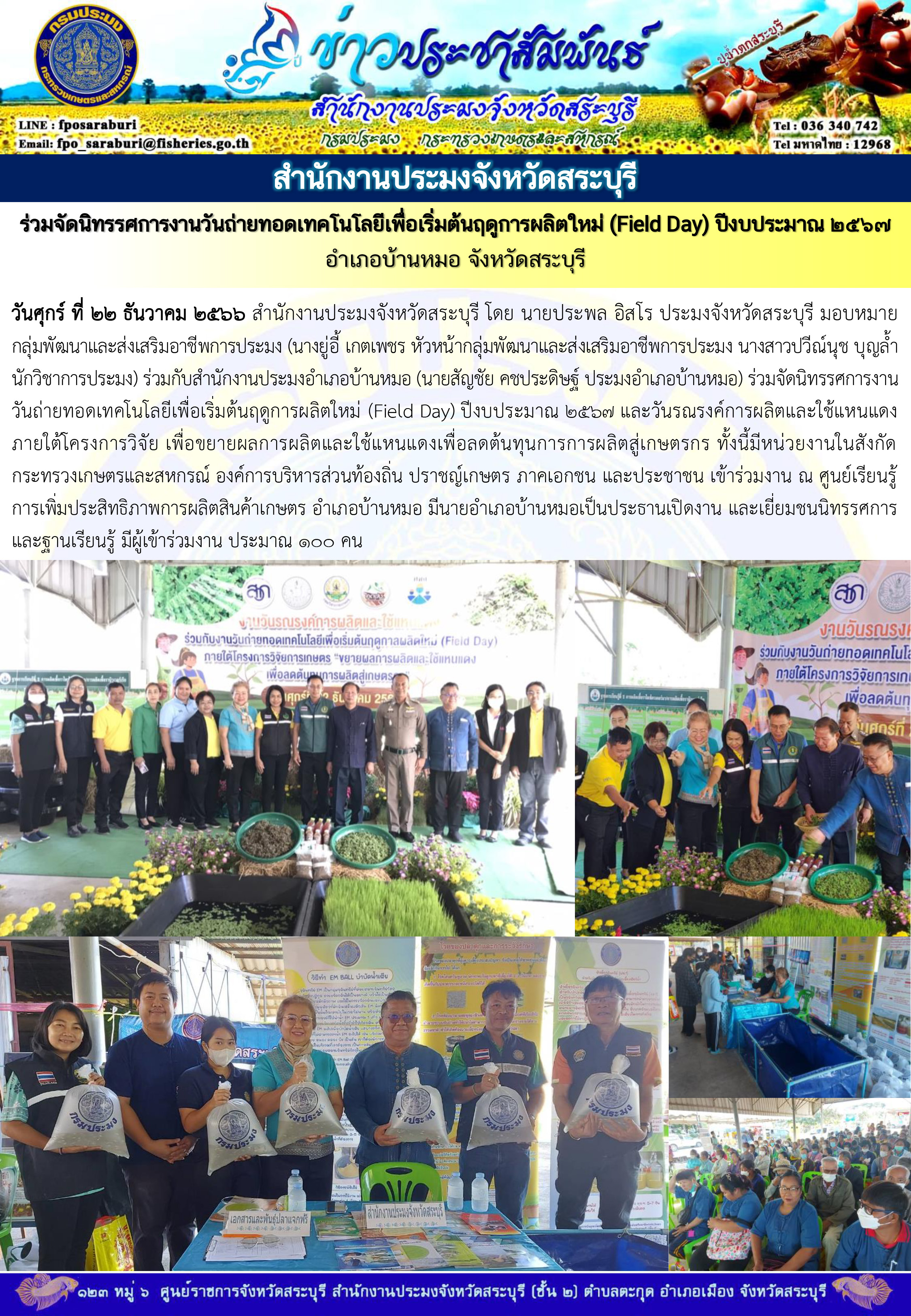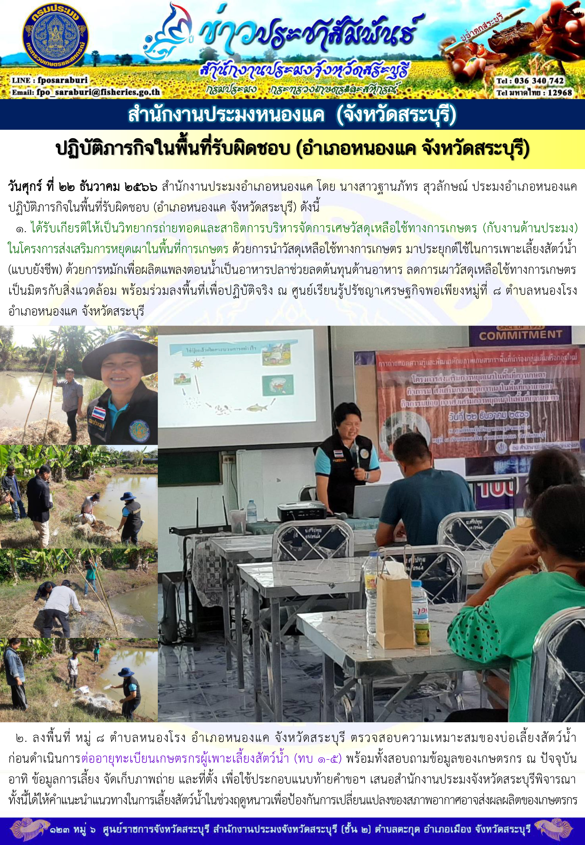 ภารกิจประจำวันที่ 22 ธันวาคม 2566 สำนักงานประมงจังหวัดสระบุรี