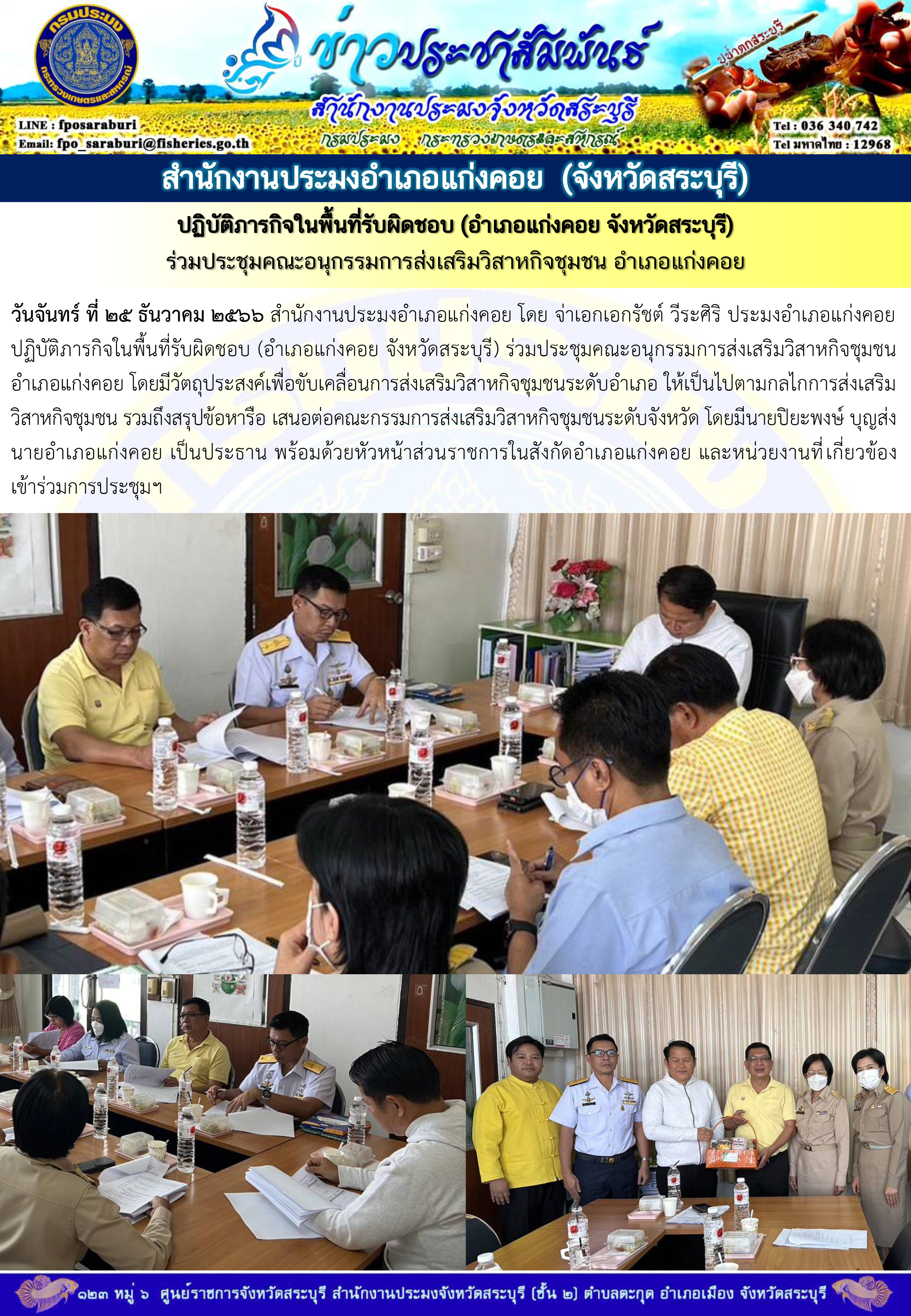 ภารกิจประจำวันที่ 25 ธันวาคม 2566 สำนักงานประมงจังหวัดสระบุรี