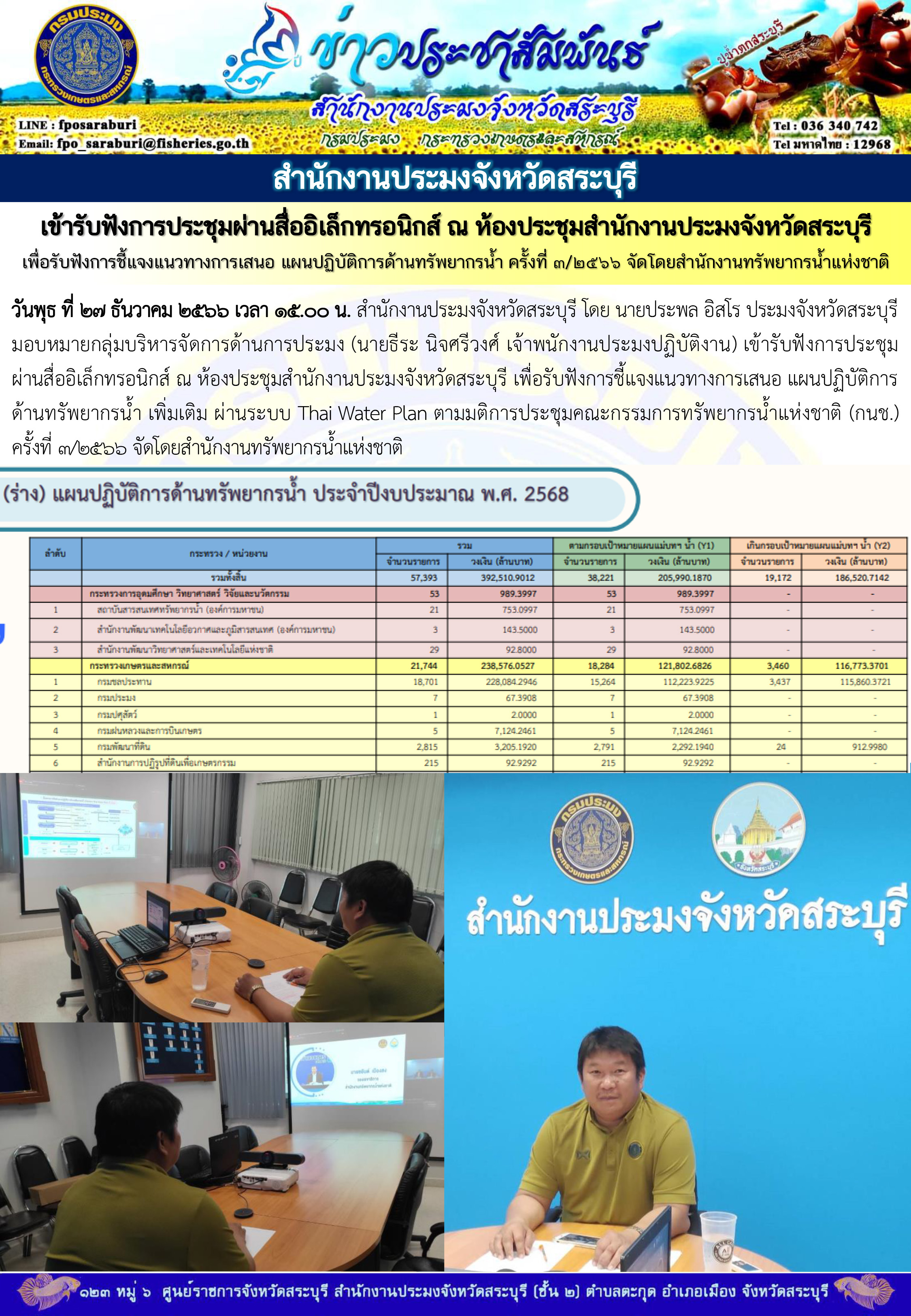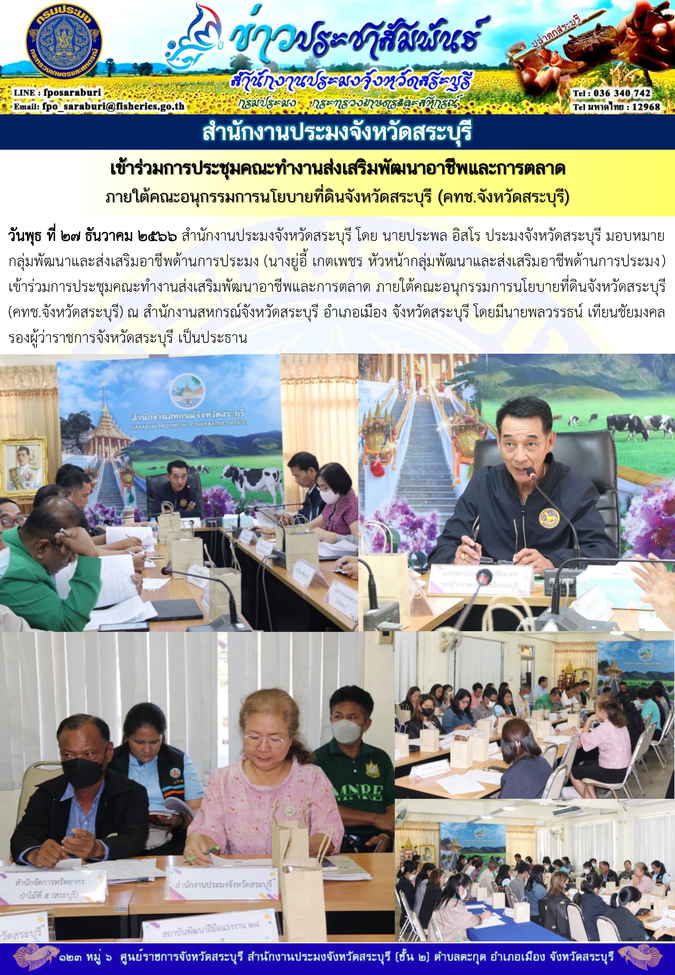 ภารกิจประจำวันที่ 27 ธันวาคม 2566 สำนักงานประมงจังหวัดสระบุรี..คลิก