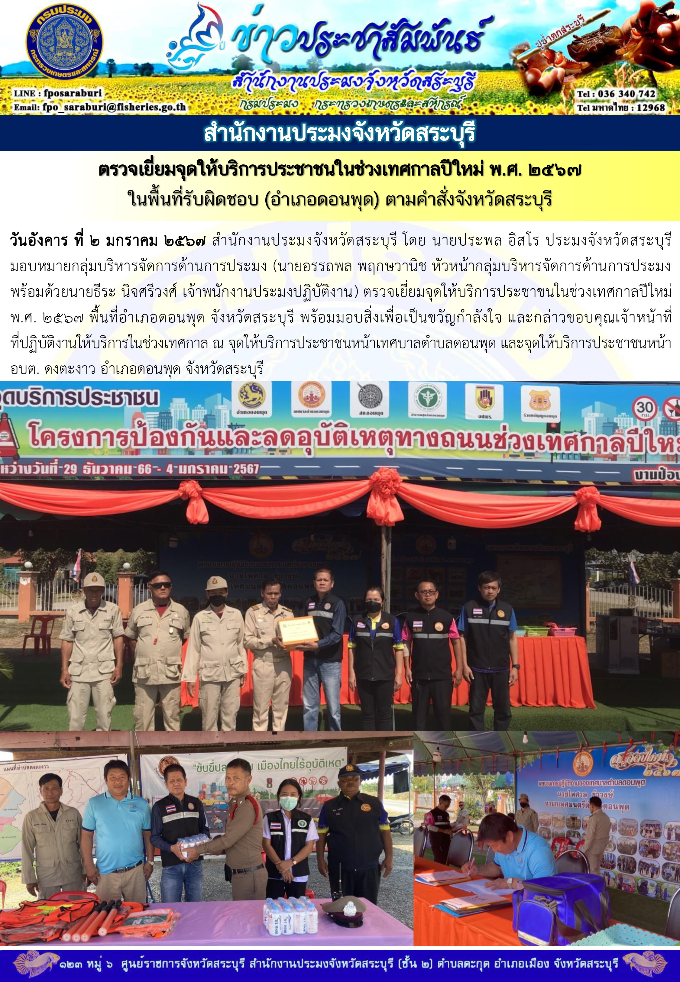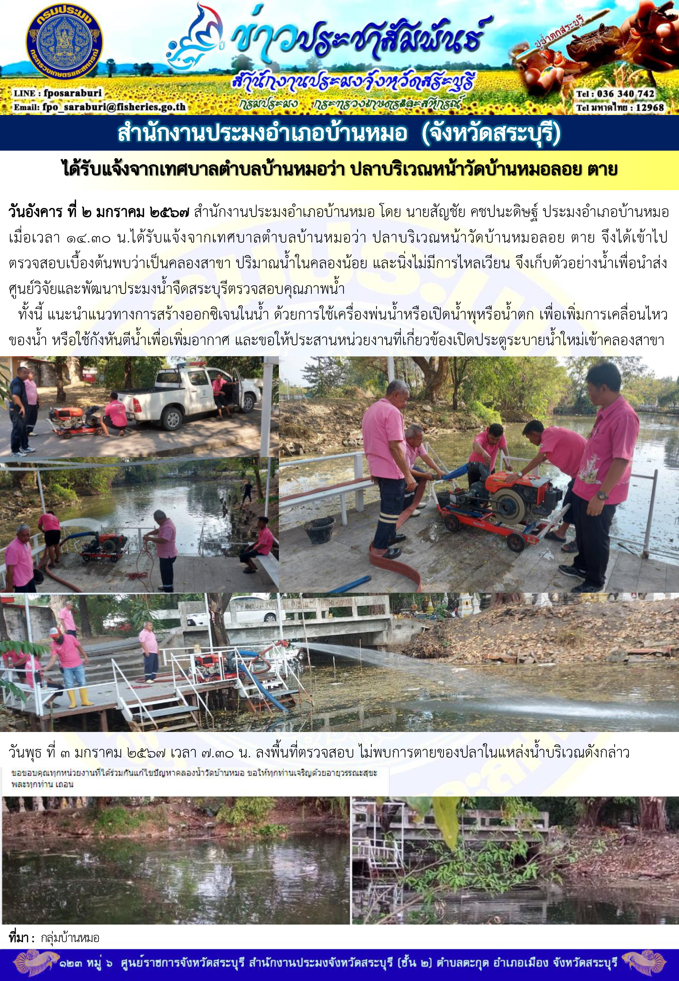 ภารกิจประจำวันที่ 2 มกราคม 2567 สำนักงานประมงจังหวัดสระบุรี