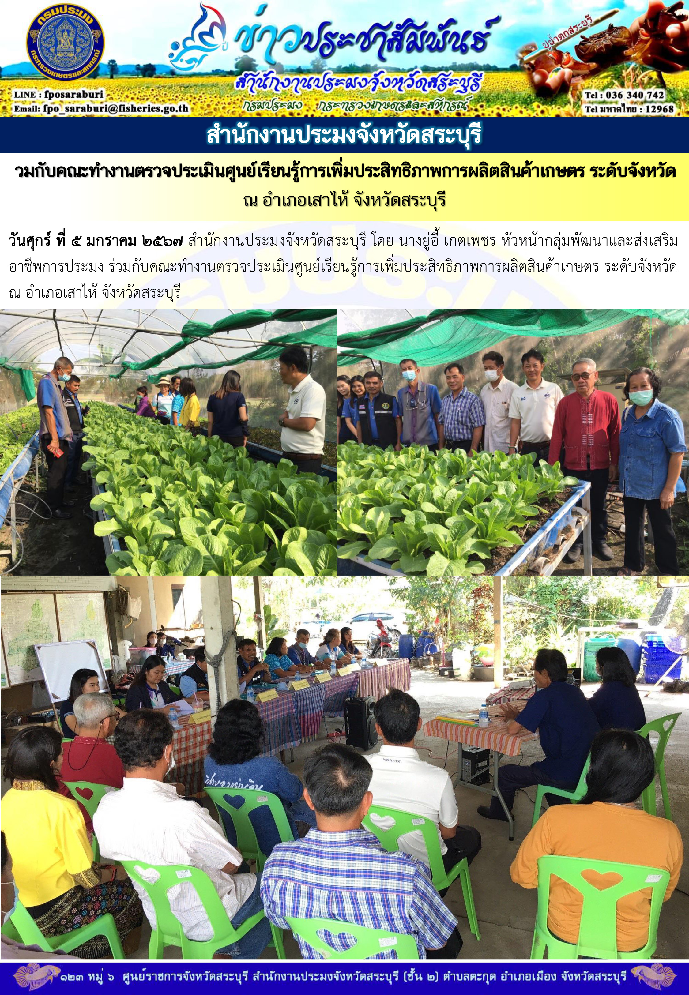 สำนักงานประมงจังหวัดสระบุรี ร่วมกับคณะทำงานตรวจประเมินศูนย์เรียนรู้การเพิ่มประสิทธิภาพการผลิตสินค้าเกษตร ระดับจังหวัด ณ อำเภอเสาไห้ จังหวัดสระบุรี