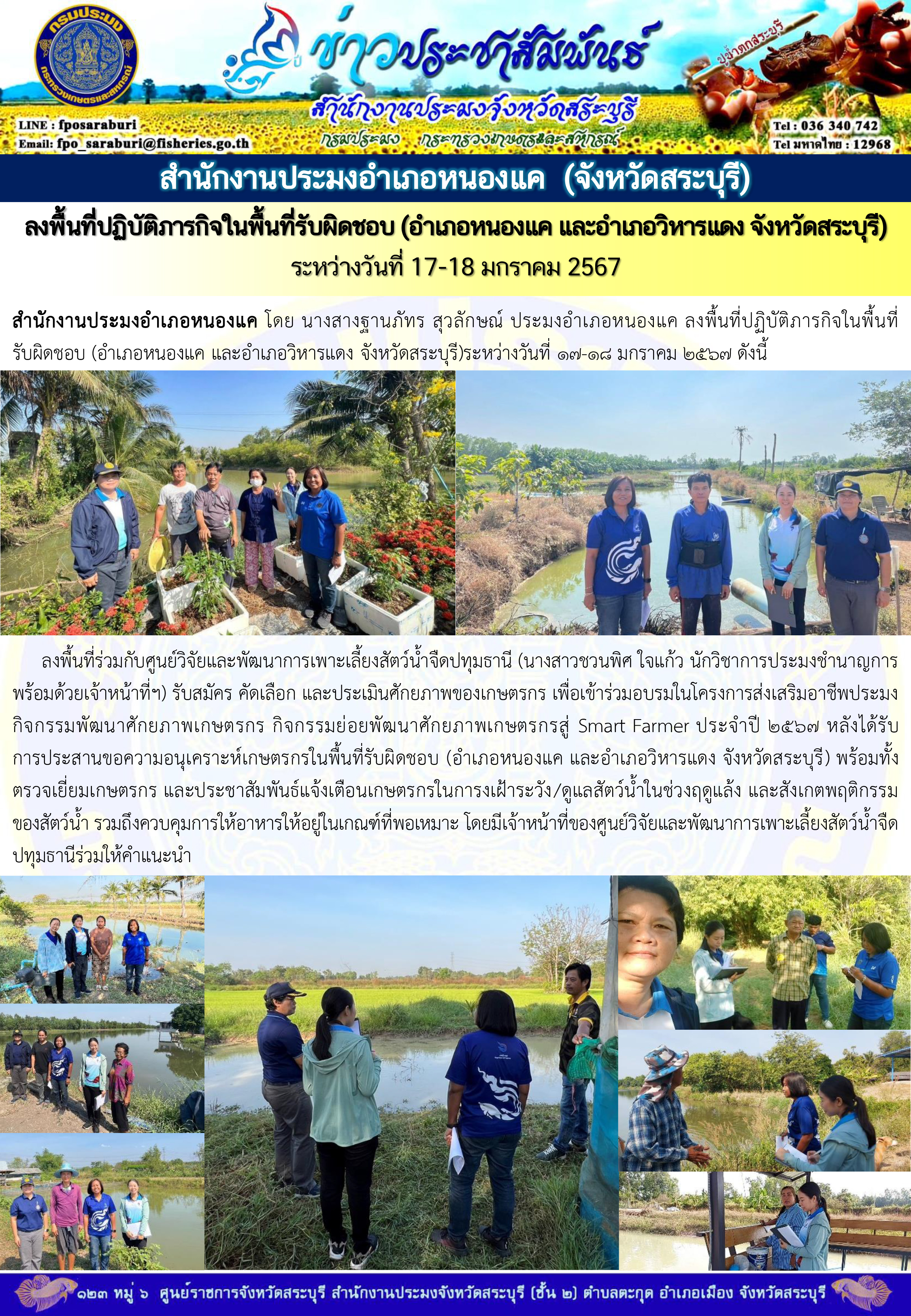 สำนักงานประมงอำเภอหนองแค ลงพื้นที่ปฏิบัติภารกิจในพื้นที่รับผิดชอบ (อำเภอหนองแค และอำเภอวิหารแดง จังหวัดสระบุรี) ระหว่างวันที่ 17-18 มกราคม 2567