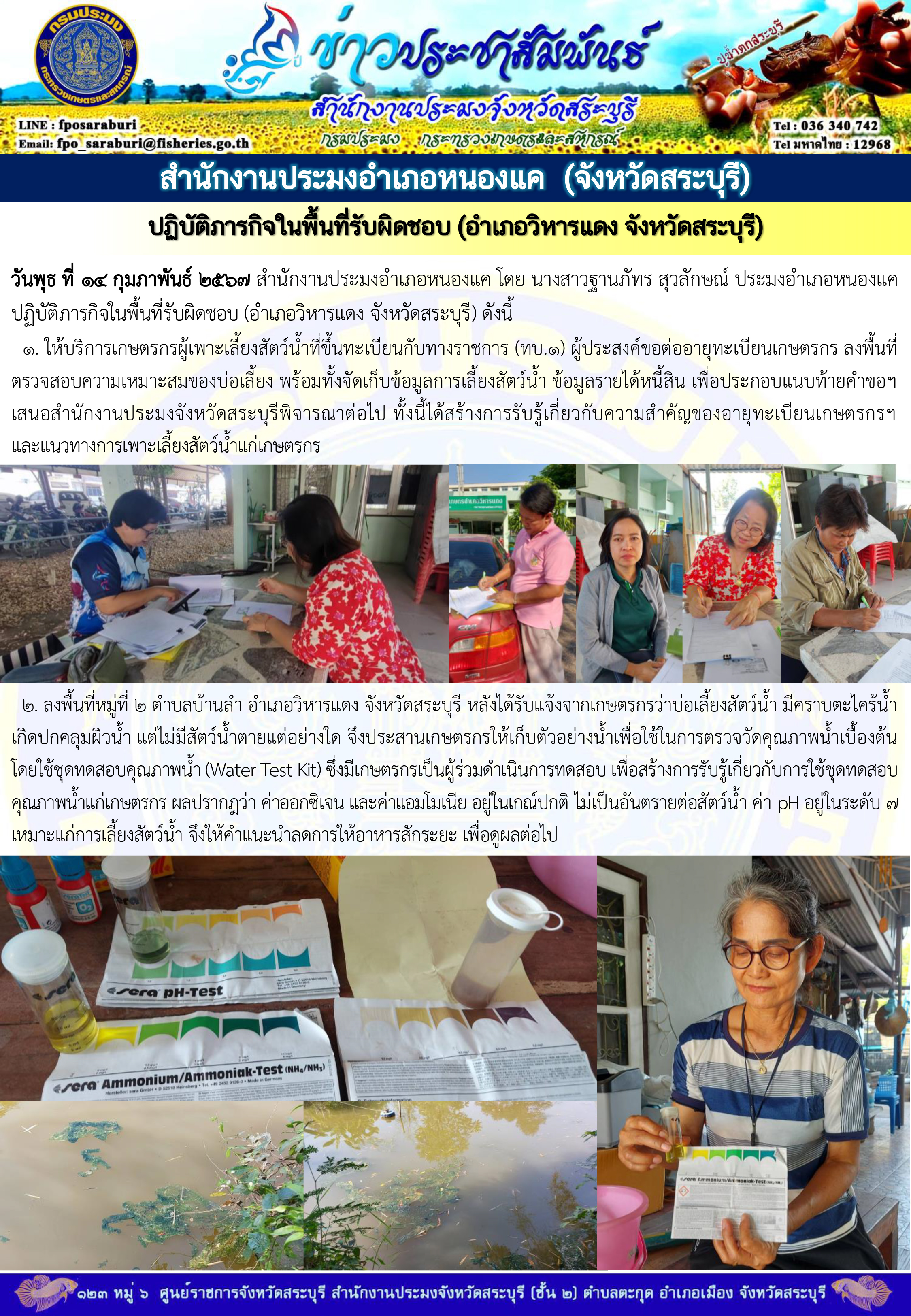 ภารกิจประจำวันที่ 14 กุมภาพันธ์ 2567 สำนักงานประมงจังหวัดสระบุรี