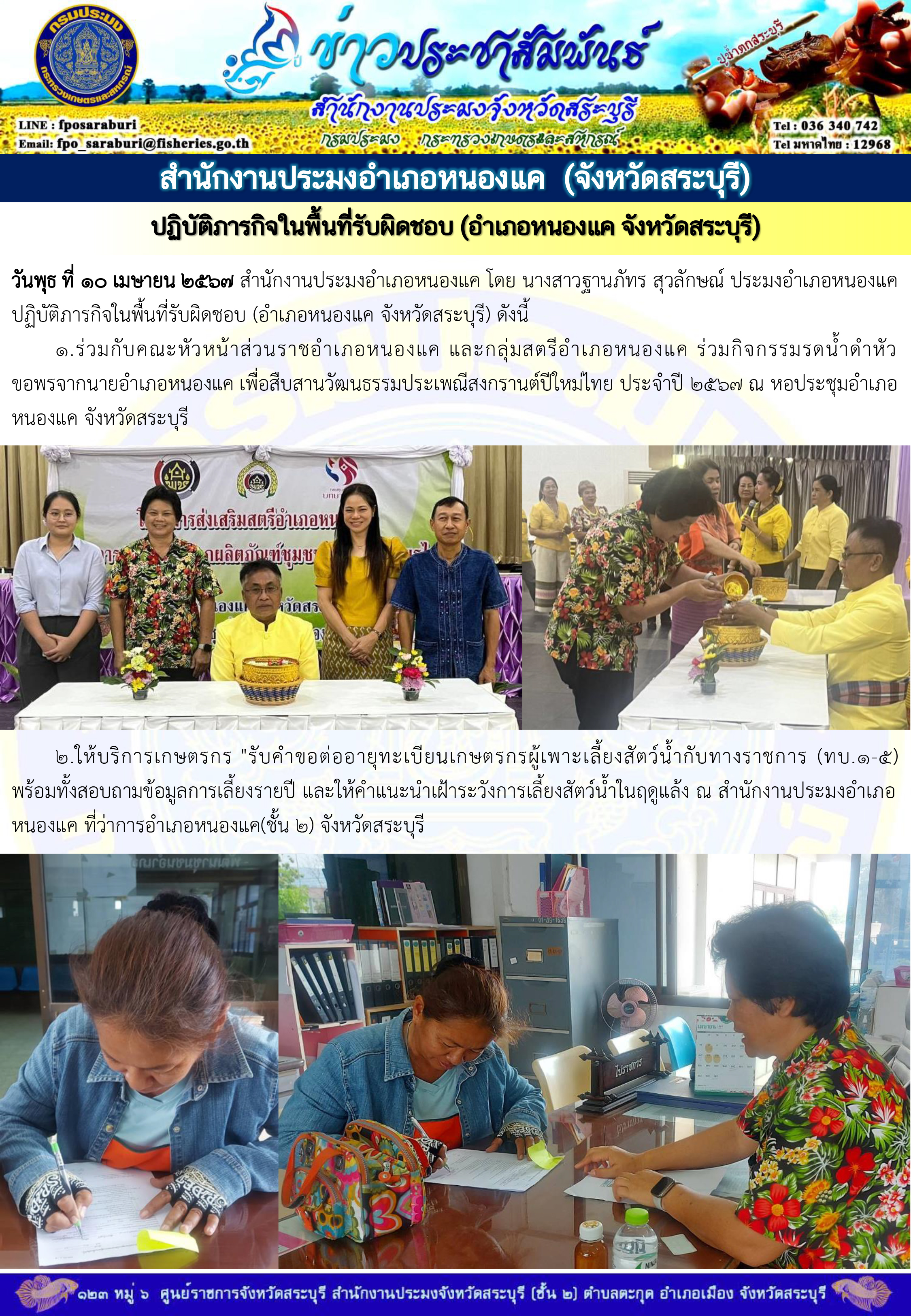 ภารกิจประจำวันที่ 10 เมษายน 2567 สำนักงานประมงจังหวัดสระบุรี
