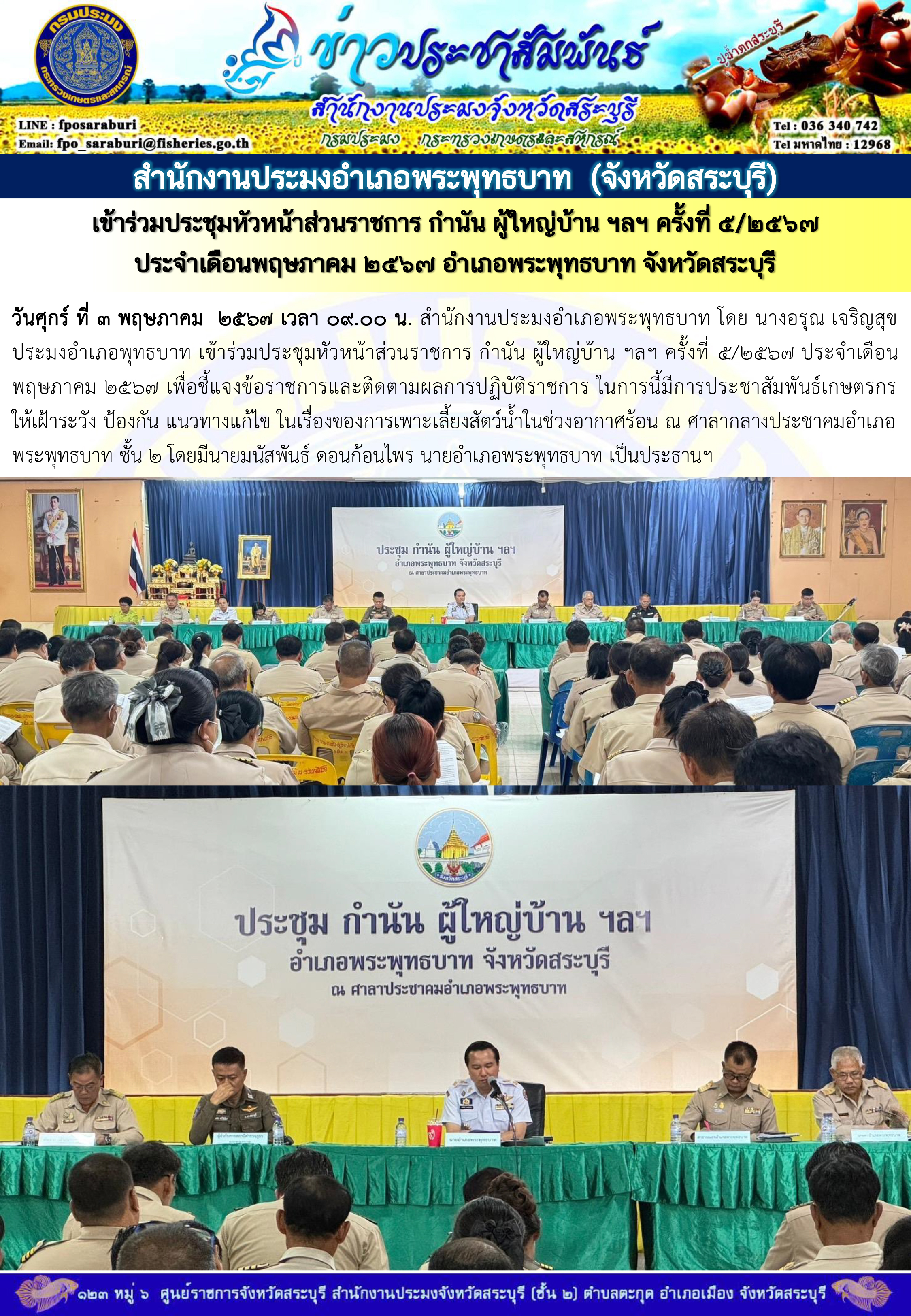 สำนักงานประมงอำเภอพระพุทธบาท เข้าร่วมประชุมหัวหน้าส่วนราชการ กำนัน ผู้ใหญ่บ้าน ฯลฯ ครั้งที่ 5/2567 ประจำเดือนพฤษภาคม 2567 อำเภอพระพุทธบาท จังหวัดสระบุรี