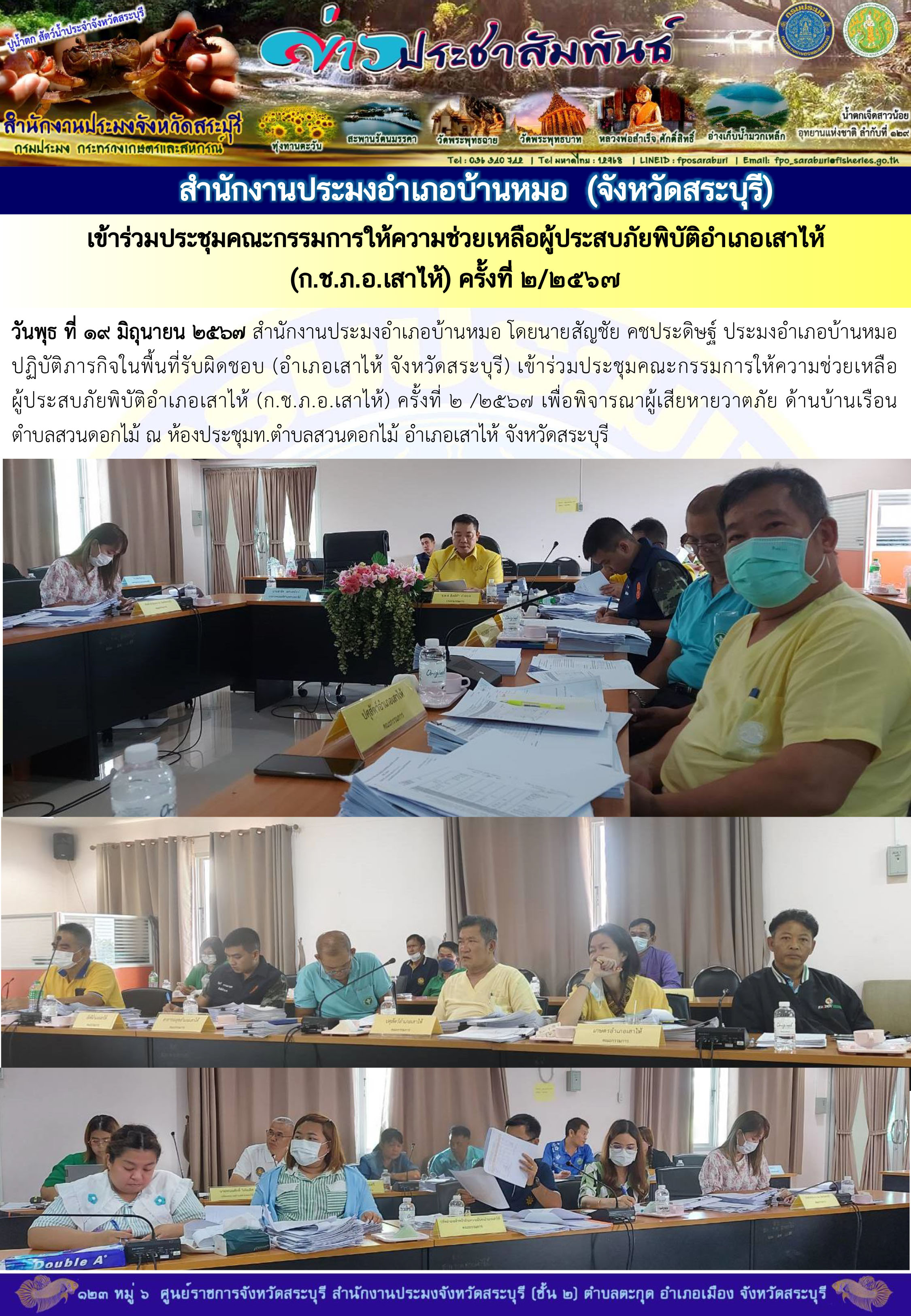สำนักงานประมงอำเภอบ้านหมอ เข้าร่วมประชุมคณะกรรมการให้ความช่วยเหลือผู้ประสบภัยพิบัติอำเภอเสาไห้ (ก.ช.ภ.อ.เสาไห้) ครั้งที่ 2 /2567