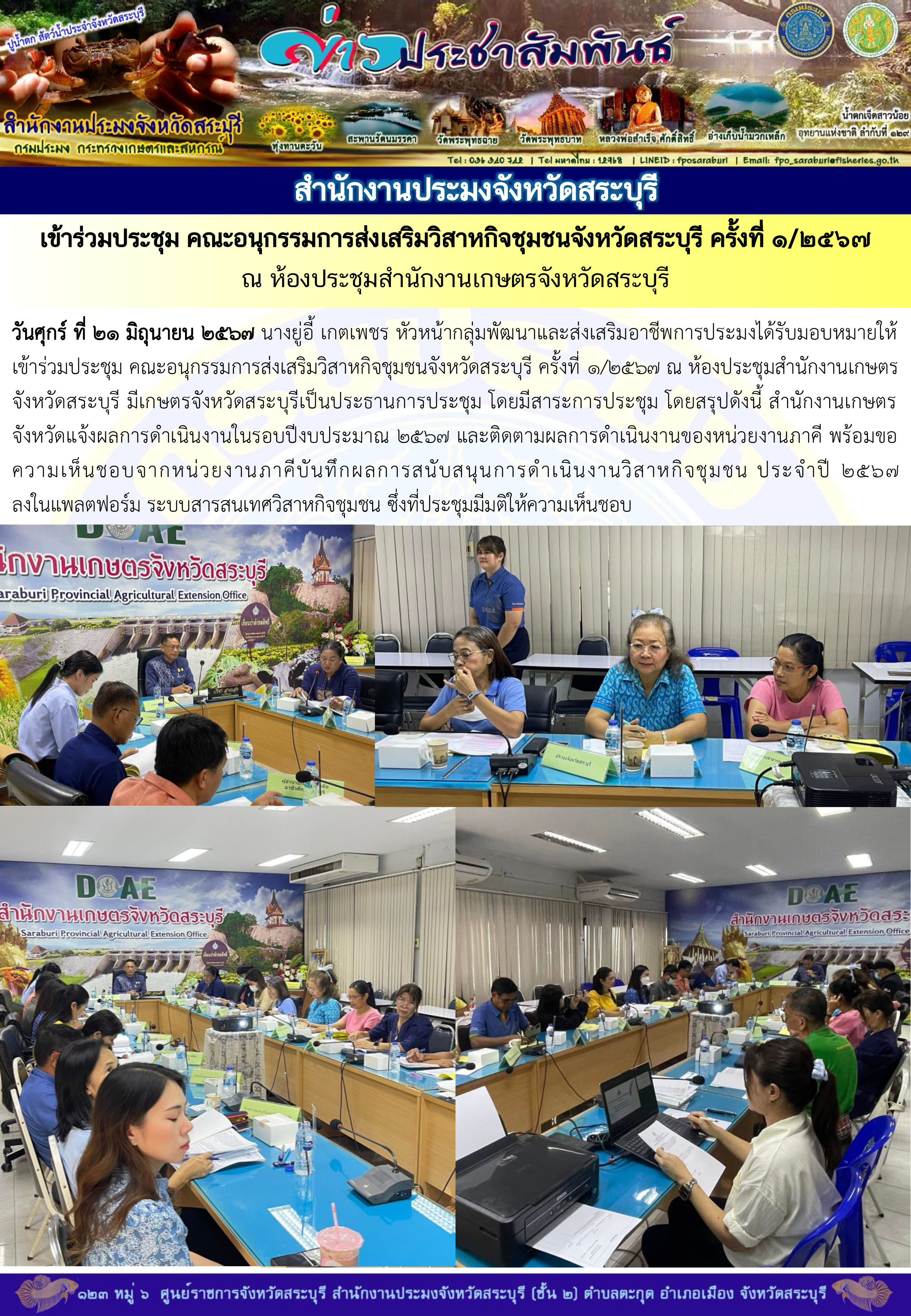 สำนักงานประมงจังหวัดสระบุรี เข้าร่วมประชุม คณะอนุกรรมการส่งเสริมวิสาหกิจชุมชนจังหวัดสระบุรี ครั้งที่ 1/2567 ณ ห้องประชุมสำนักงานเกษตรจังหวัดสระบุรี