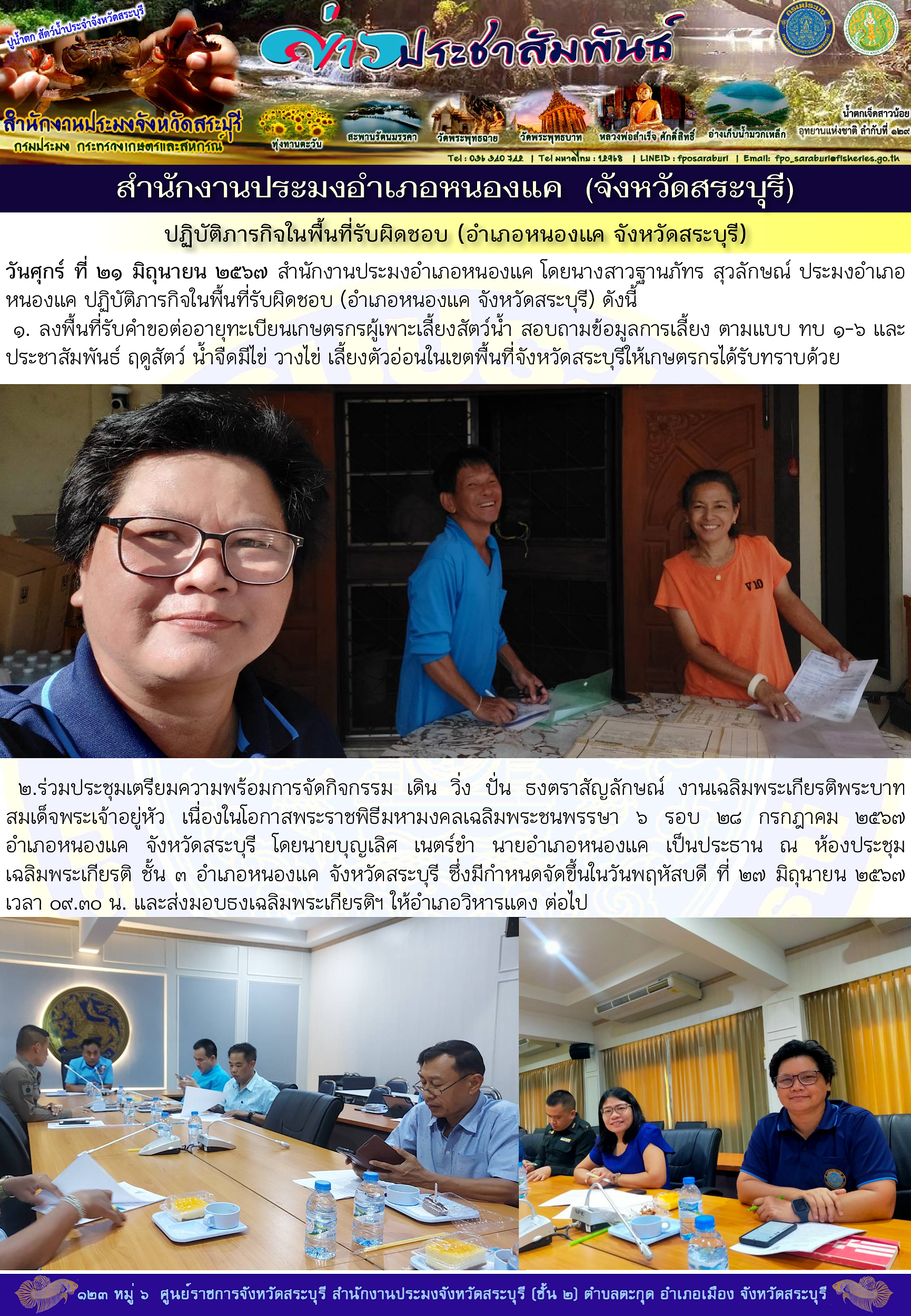 ภารกิจประจำวันที่ 21 มิถุนายน 2567 สำนักงานประมงจังหวัดสระบุรี