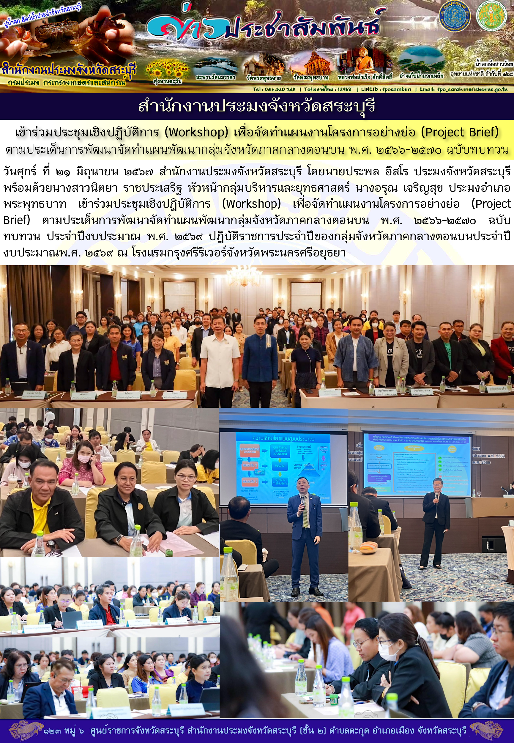 สำนักงานประมงจังหวัดสระบุรี เข้าร่วมประชุมเชิงปฏิบัติการ (Workshop) เพื่อจัดทำแผนงานโครงการอย่างย่อ (Project Brief) ตามประเด็นการพัฒนาจัดทำแผนพัฒนากลุ่มจังหวัดภาคกลางตอนบน พ.ศ. ๒๕๖๖-๒๕๗๐ ฉบับทบทวน