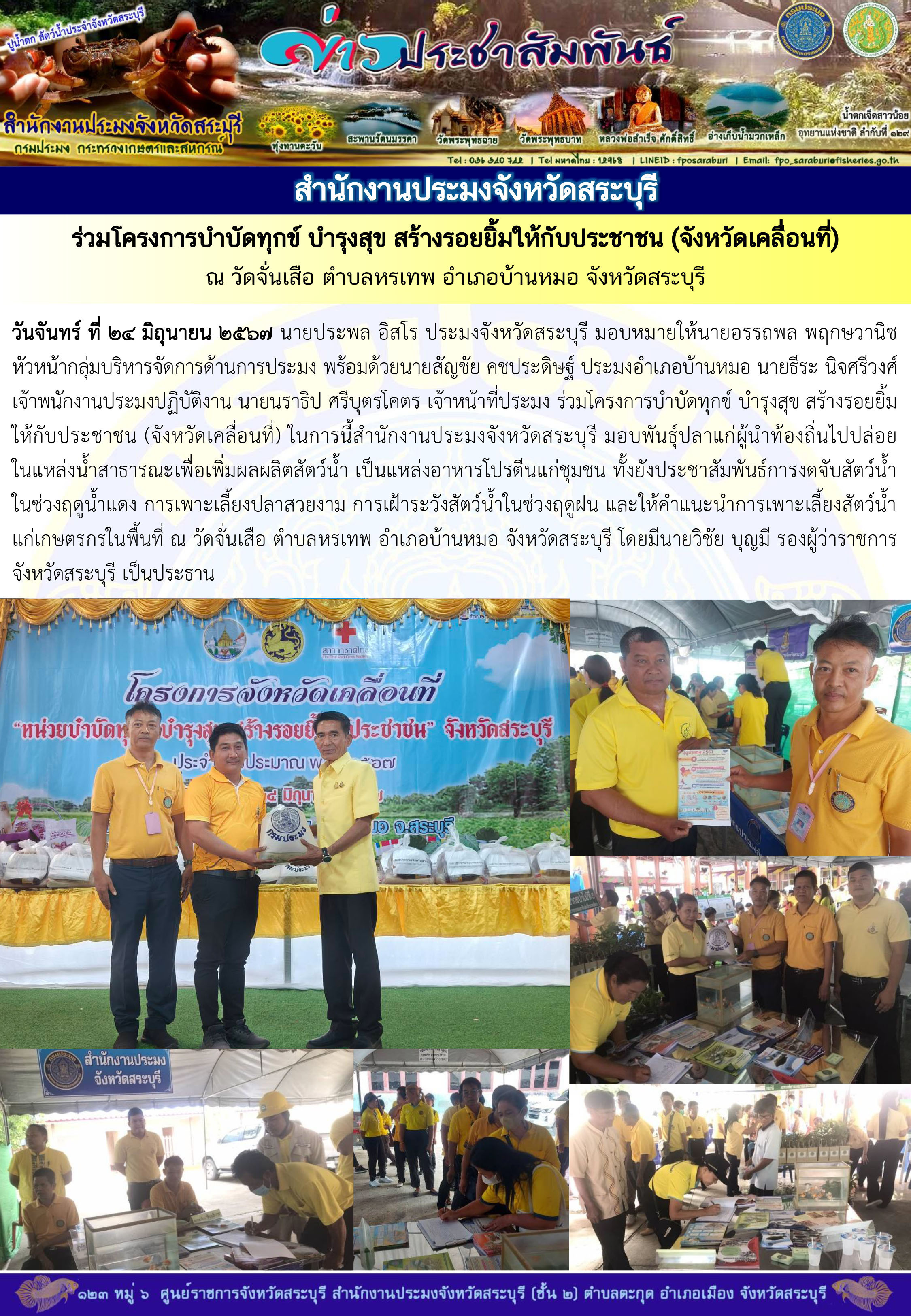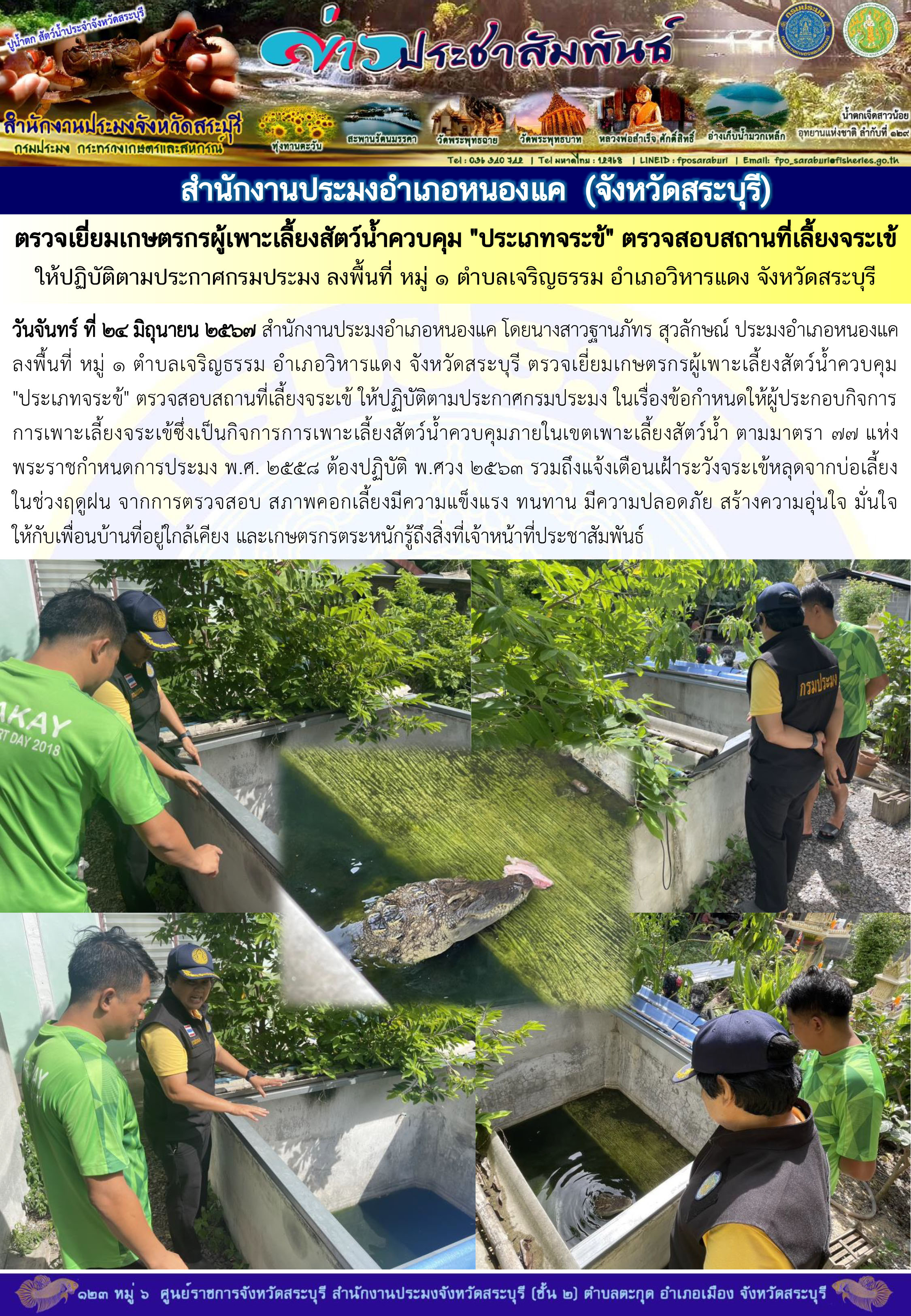 หรืออาจส่งประกาศแจ้งเตือนให้เจ้าของข้อมูลรับทราบโดยตรงตามช่องทางการสื่อสารของสำนักงานประมงจังหวัดสระบุรี