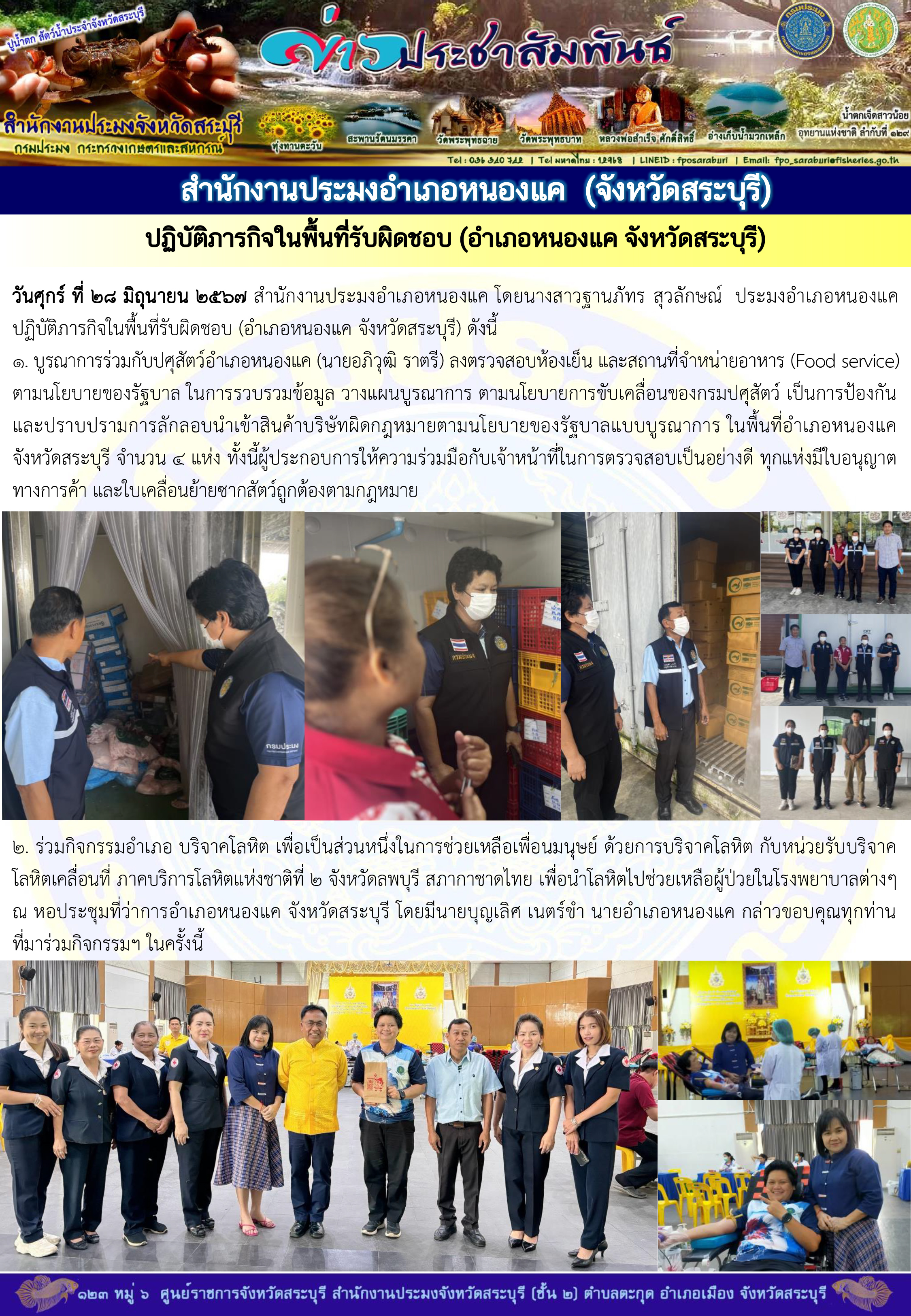 ภารกิจประจำวันที่ 28 มิถุนายน 2567 สำนักงานประมงจังหวัดสระบุรี..คลิก
