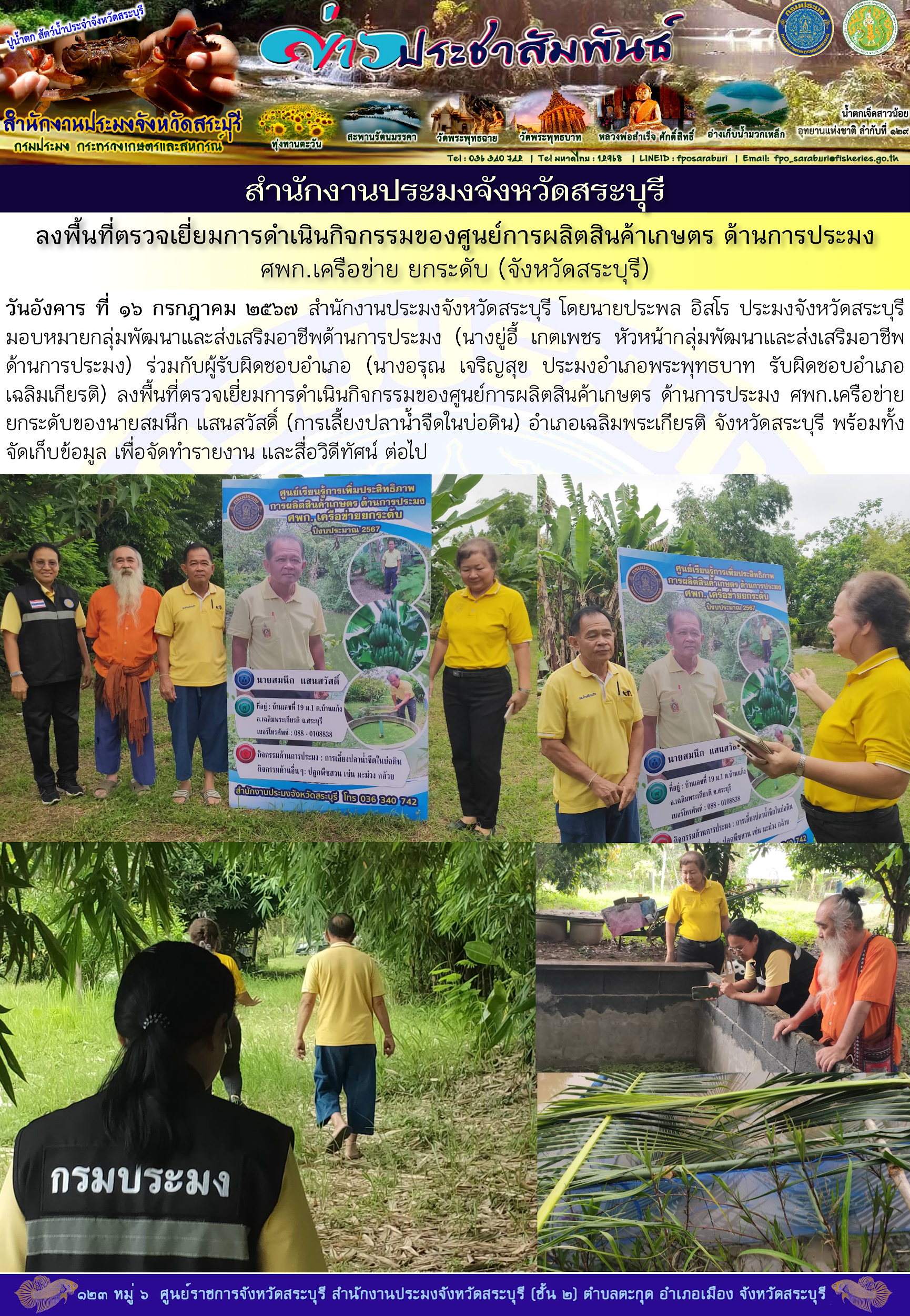 สำนักงานประมงจังหวัดสระบุรี ลงพื้นที่ตรวจเยี่ยมการดำเนินกิจกรรมของศูนย์การผลิตสินค้าเกษตร ด้านการประมง ศพก.เครือข่าย ยกระดับ (จังหวัดสระบุรี)