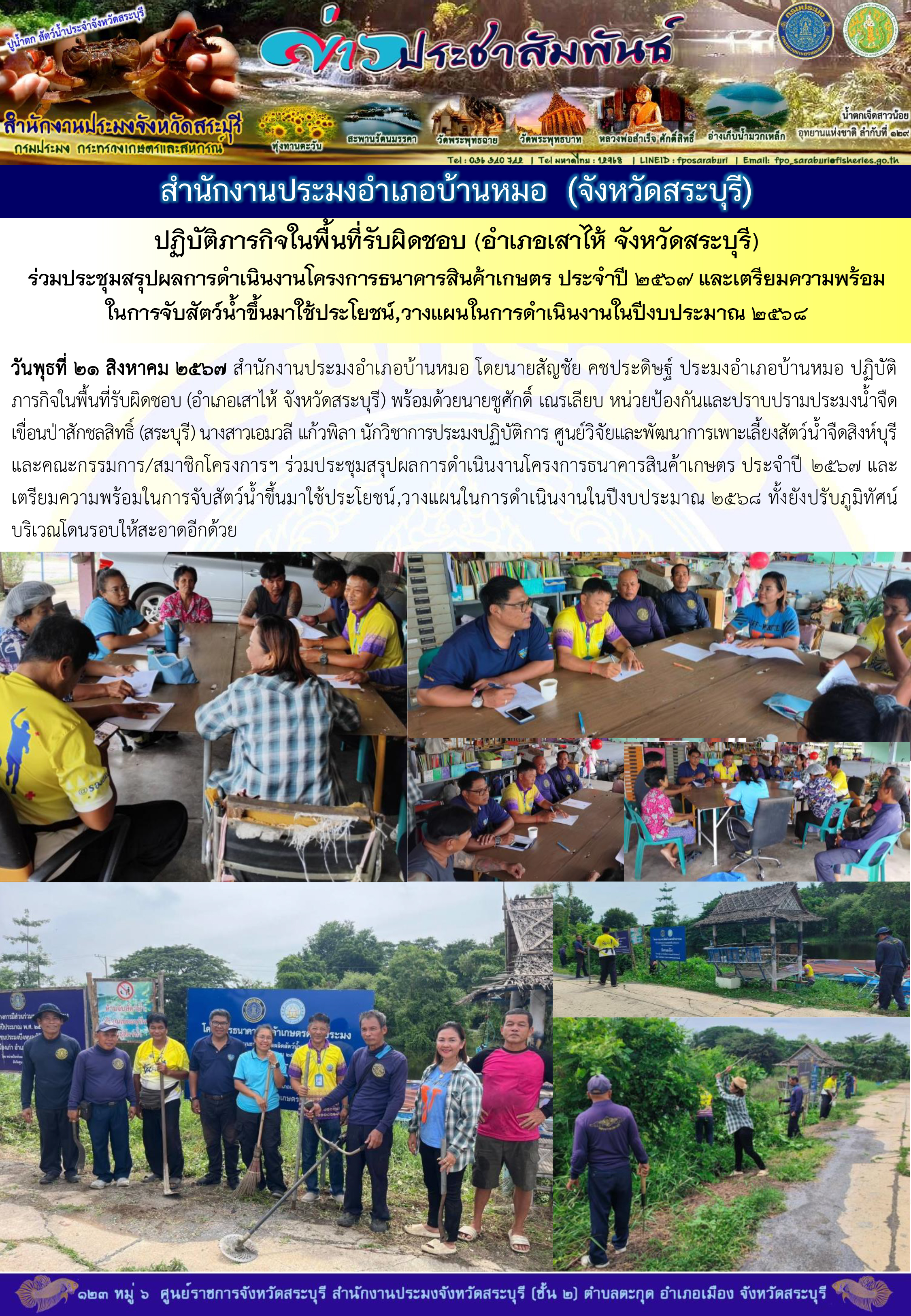 ภารกิจประจำวันที่ 21 สิงหาคม 2567 สำนักงานประมงจังหวัดสระบุรี