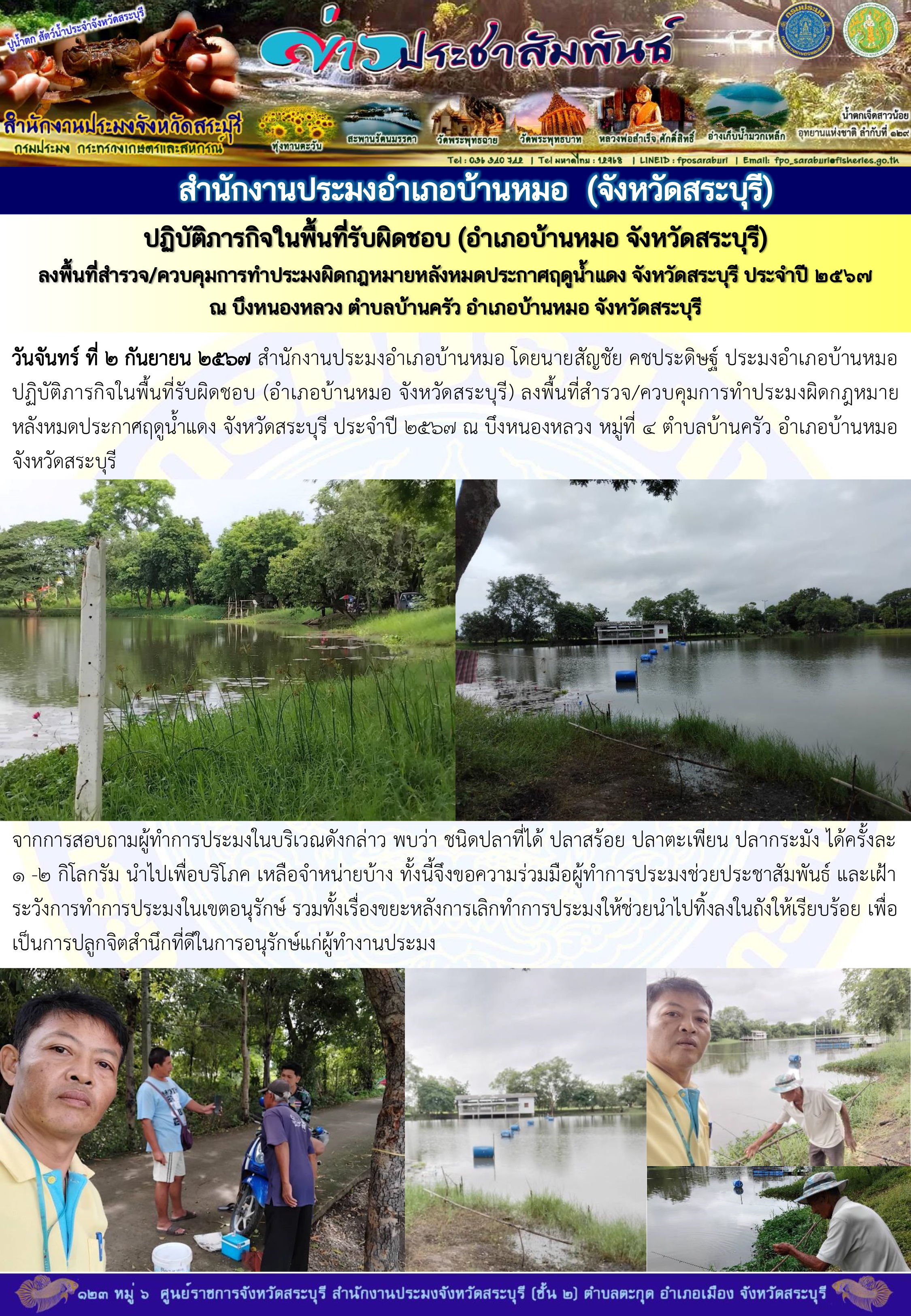 ภารกิจประจำวันที่ 2 กันยายน 2567 สำนักงานประมงจังหวัดสระบุรี