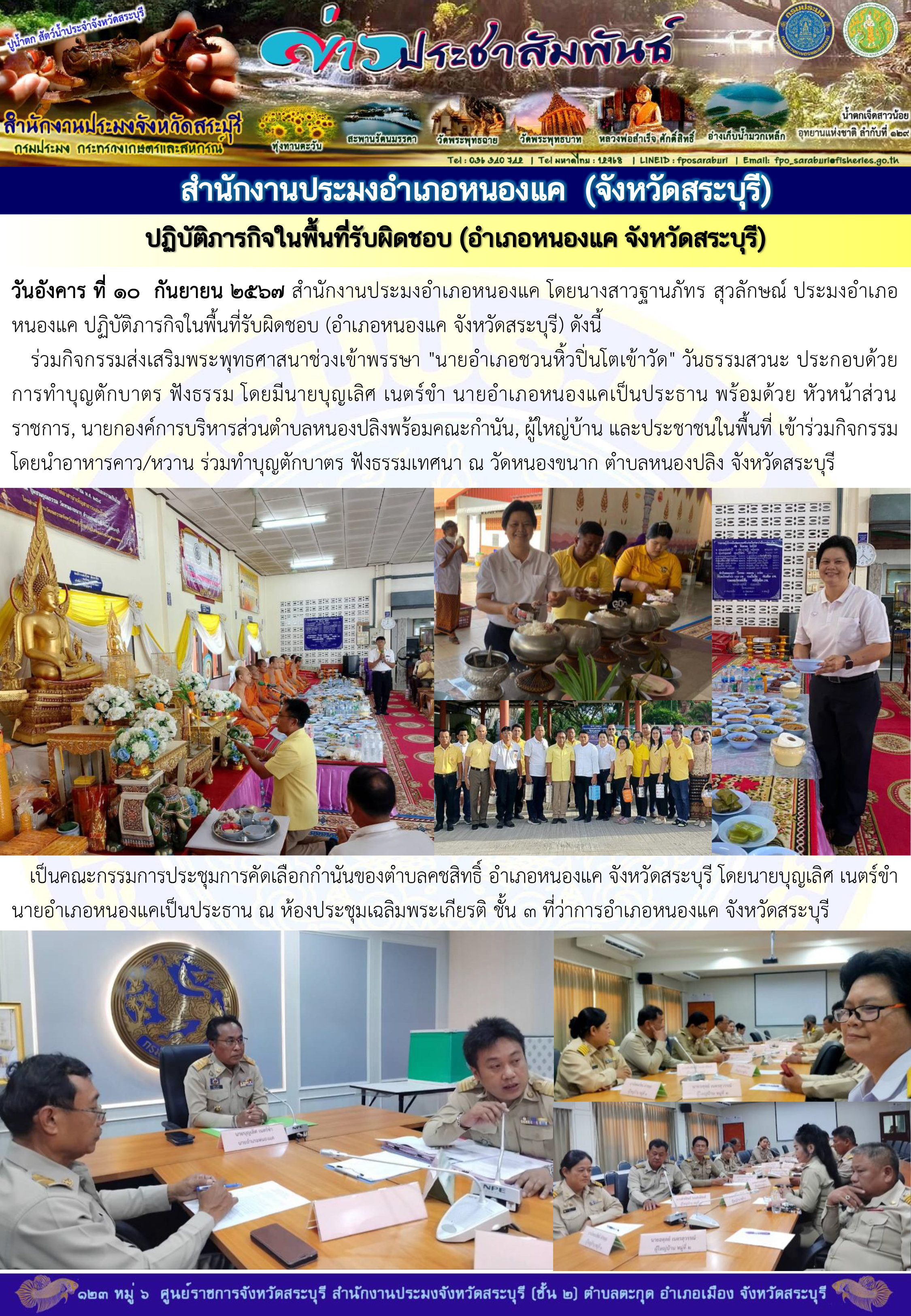 ภารกิจประจำวันที่ 10 กันยายน 2567 สำนักงานประมงจังหวัดสระบุรี..คลิก