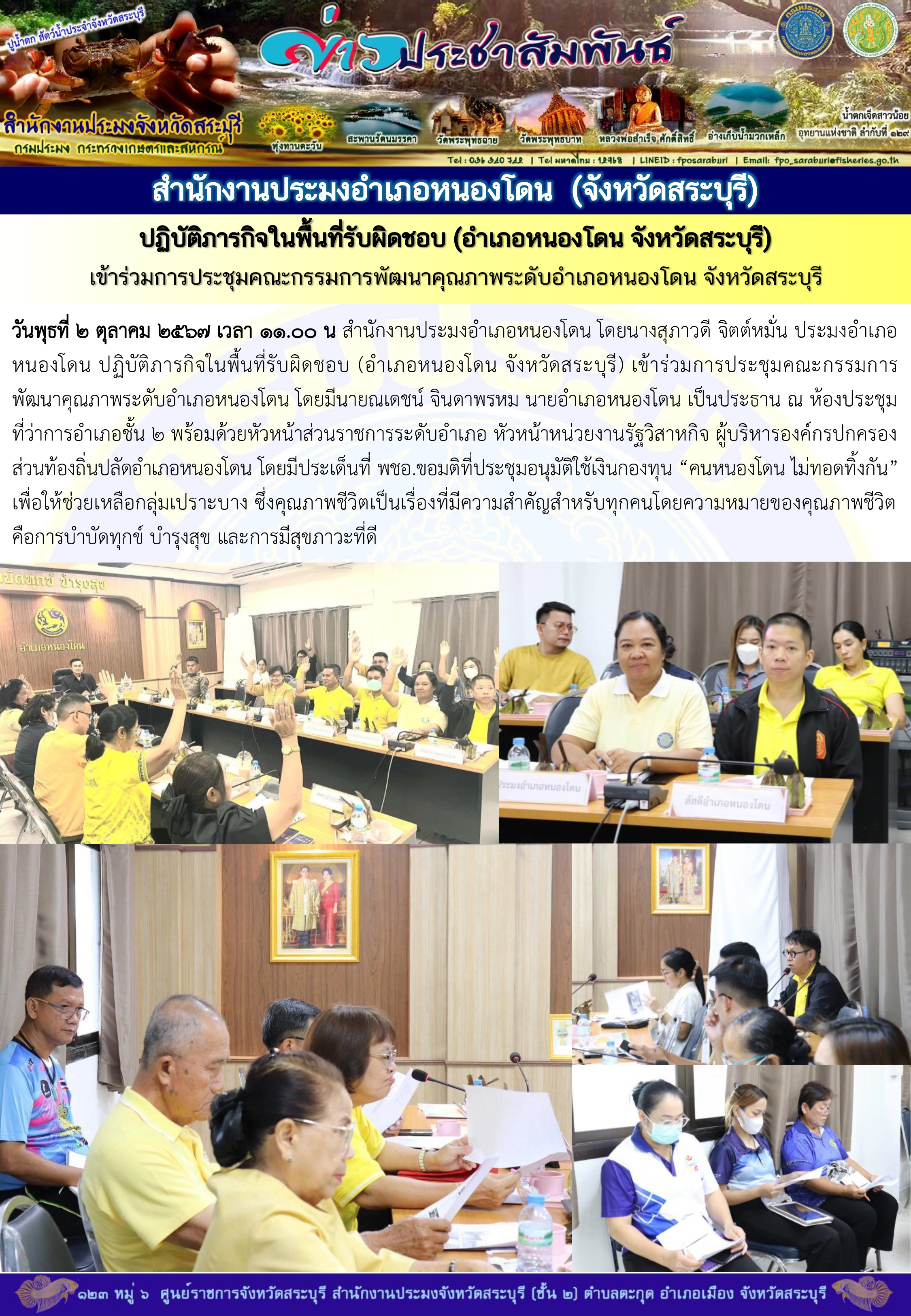 สำนักงานประมงอำเภอหนองโดน ปฏิบัติภารกิจในพื้นที่รับผิดชอบ (อำเภอหนองโดน จังหวัดสระบุรี) เข้าร่วมการประชุมคณะกรรมการพัฒนาคุณภาพระดับอำเภอหนองโดน จังหวัดสระบุรี
