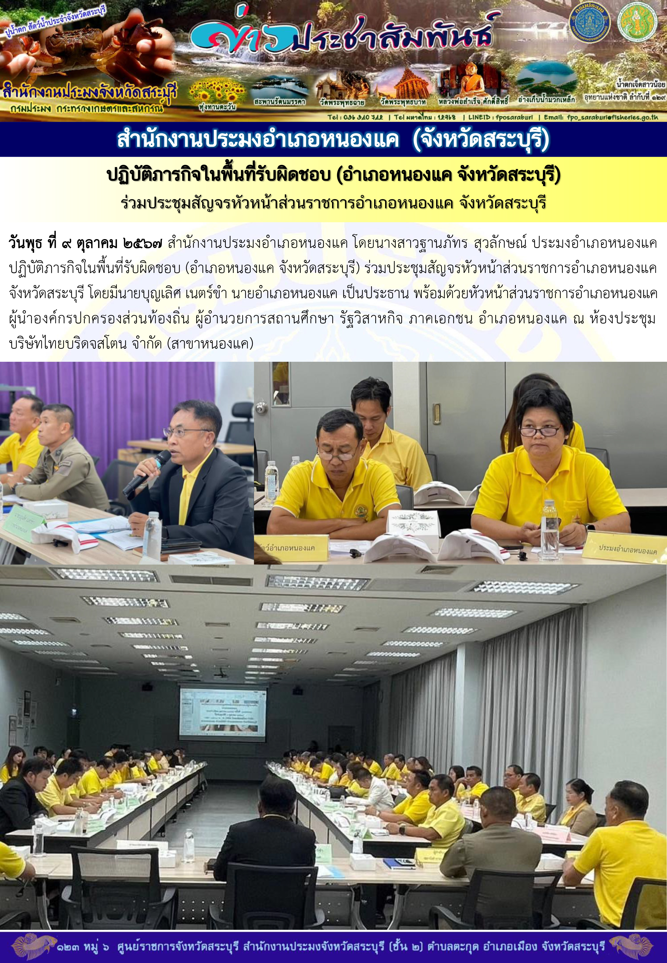 สำนักงานประมงอำเภอหนองแค ปฏิบัติภารกิจในพื้นที่รับผิดชอบ (อำเภอหนองแค จังหวัดสระบุรี) ร่วมประชุมสัญจรหัวหน้าส่วนราชการอำเภอหนองแค จังหวัดสระบุรี