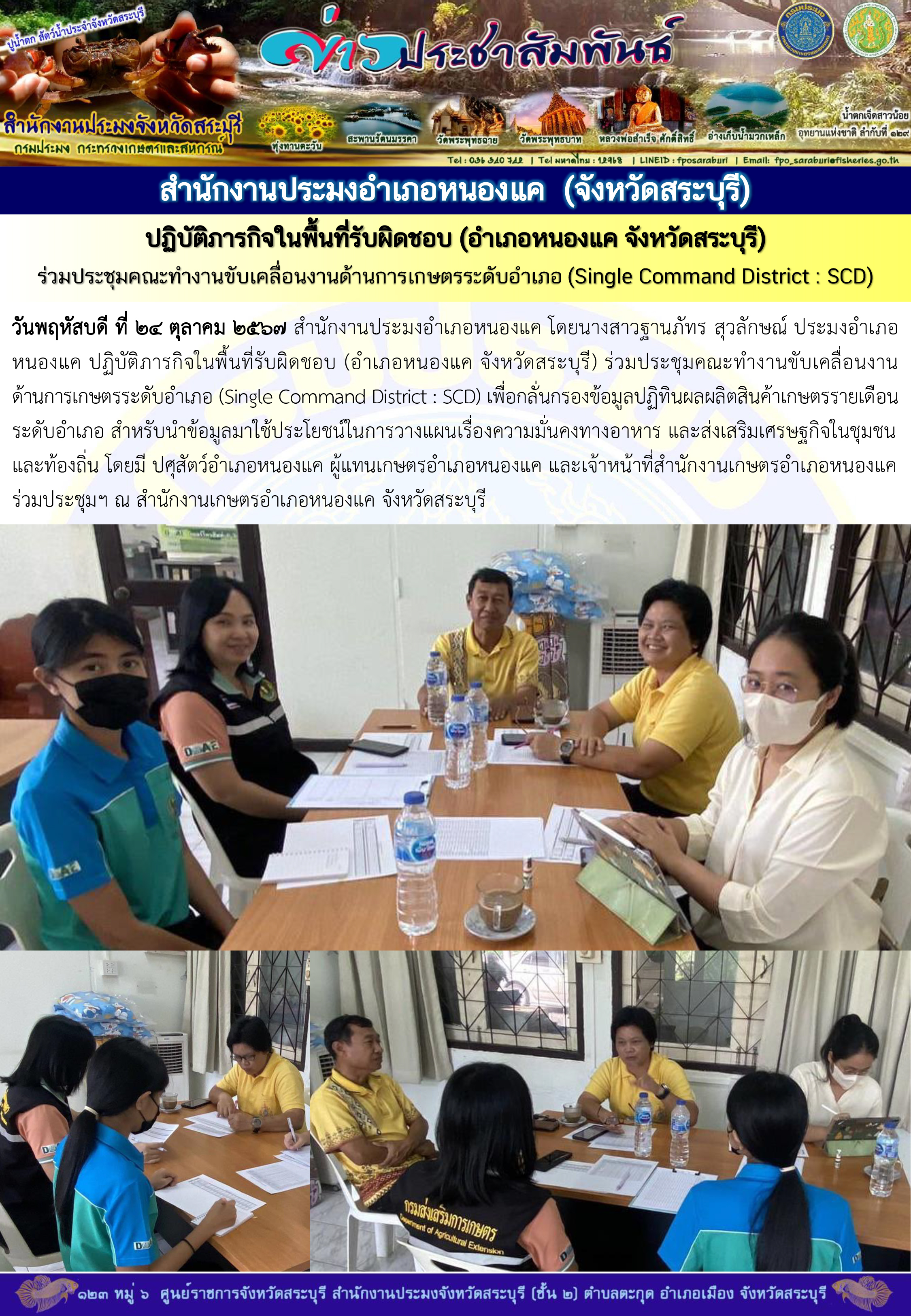 สำนักงานประมงอำเภอหนองแค ปฏิบัติภารกิจในพื้นที่รับผิดชอบ (อำเภอหนองแค จังหวัดสระบุรี) ร่วมประชุมคณะทำงานขับเคลื่อนงานด้านการเกษตรระดับอำเภอ (Single Command District : SCD)