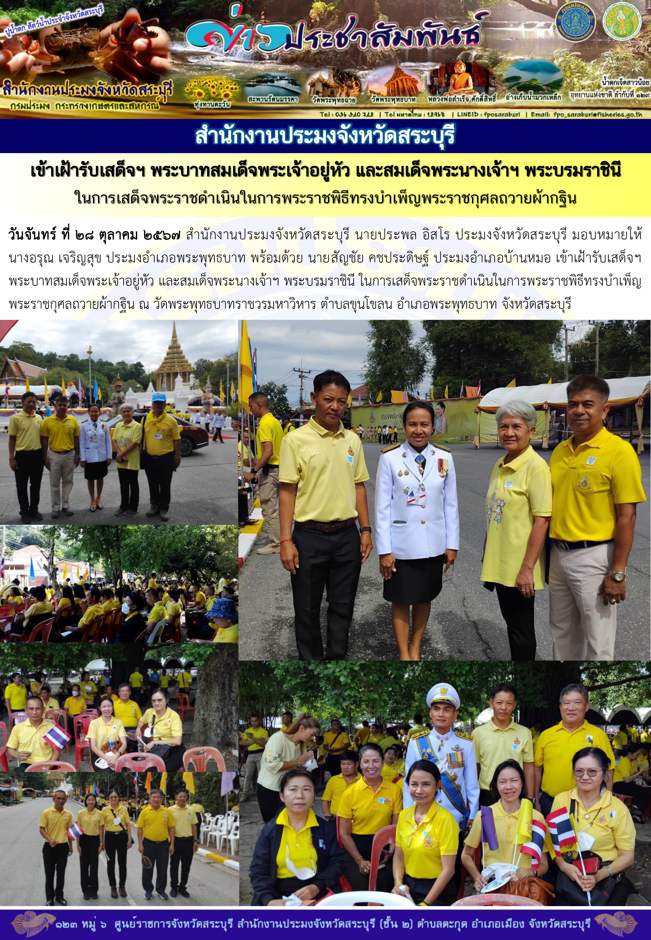 สำนักงานประมงจังหวัดสระบุรี เข้าเฝ้ารับเสด็จฯ พระบาทสมเด็จพระเจ้าอยู่หัว และสมเด็จพระนางเจ้าฯ พระบรมราชินี ในการเสด็จพระราชดำเนินในการพระราชพิธีทรงบำเพ็ญพระราชกุศลถวายผ้ากฐิน