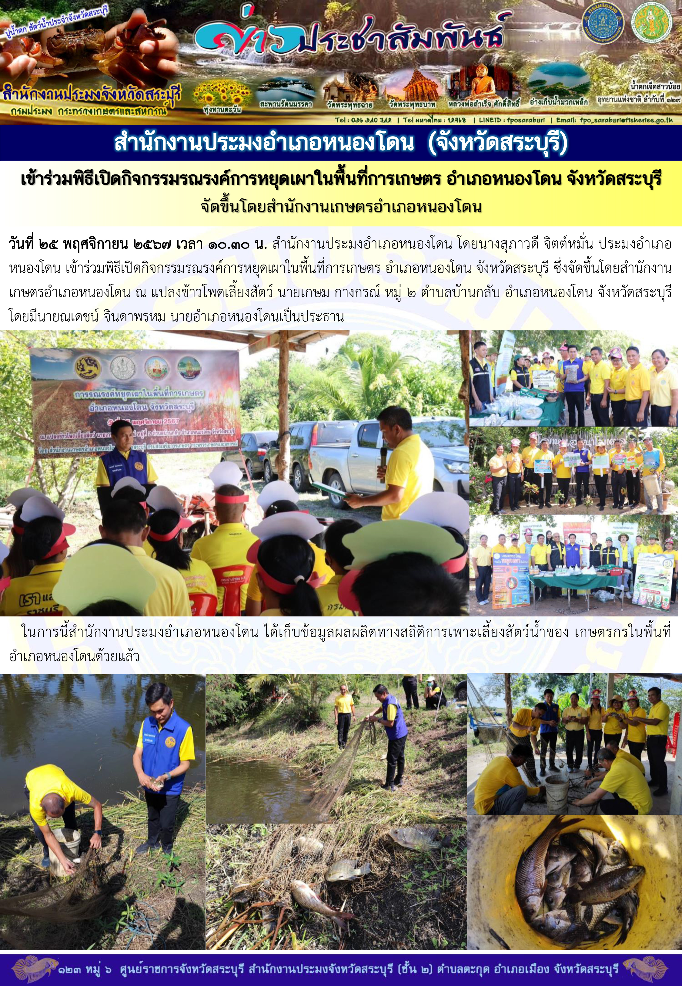 สำนักงานประมงอำเภอหนองโดน เข้าร่วมพิธีเปิดกิจกรรมรณรงค์การหยุดเผาในพื้นที่การเกษตร อำเภอหนองโดน จังหวัดสระบุรี จัดขึ้นโดยสำนักงานเกษตรอำเภอหนองโดน