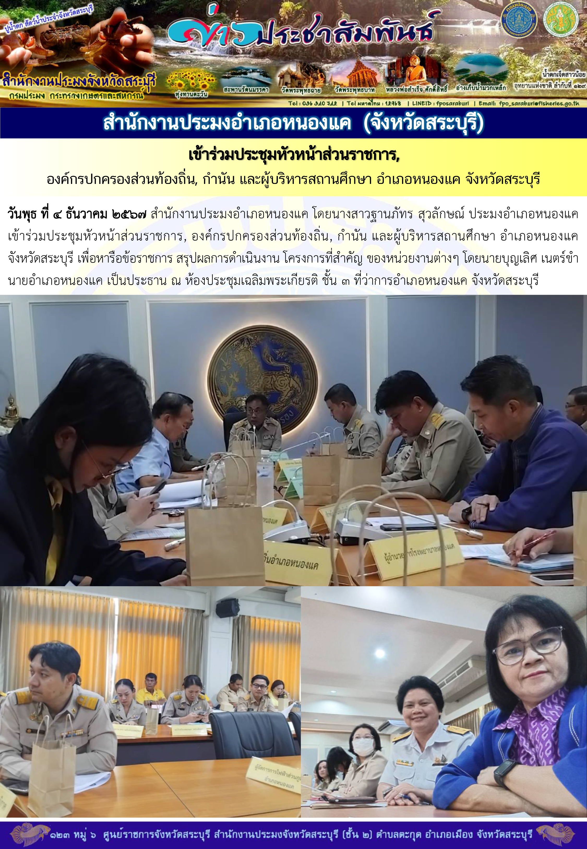 สำนักงานประมงอำเภอพระพุทธบาท เข้าร่วมประชุมหัวหน้าส่วนราชการ กำนัน ผู้ใหญ่บ้าน ฯลฯ ครั้งที่ 12/2567 อำเภอพระพุทธบาท จังหวัดสระบุรี