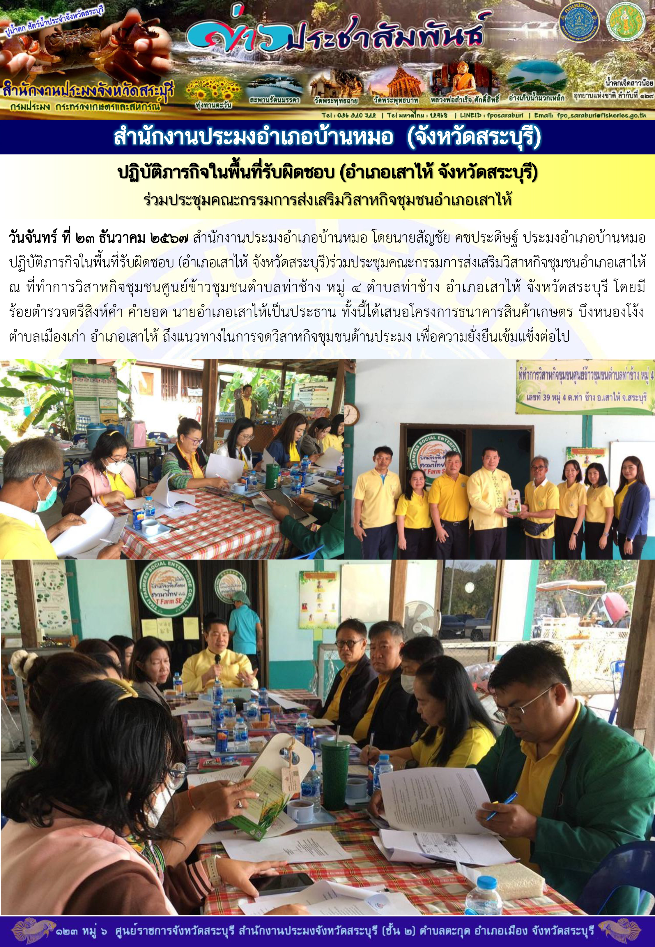 สำนักงานประมงอำเภอบ้านหมอ ปฏิบัติภารกิจในพื้นที่รับผิดชอบ (อำเภอเสาไห้ จังหวัดสระบุรี)ร่วมประชุมคณะกรรมการส่งเสริมวิสาหกิจชุมชนอำเภอเสาไห้