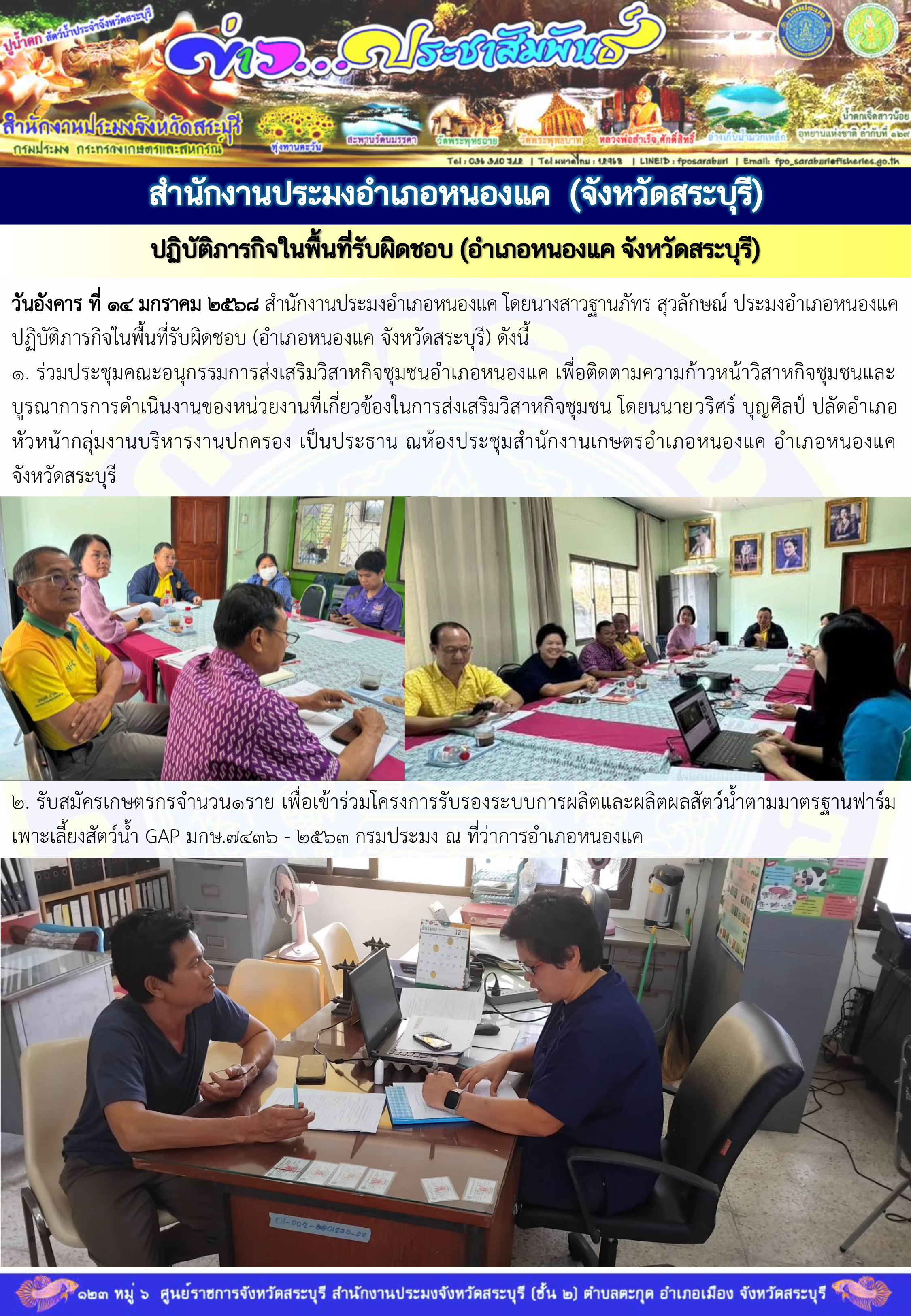 ภารกิจประจำวันที่ 14 มกราคม 2568 สำนักงานประมงจังหวัดสระบุรี