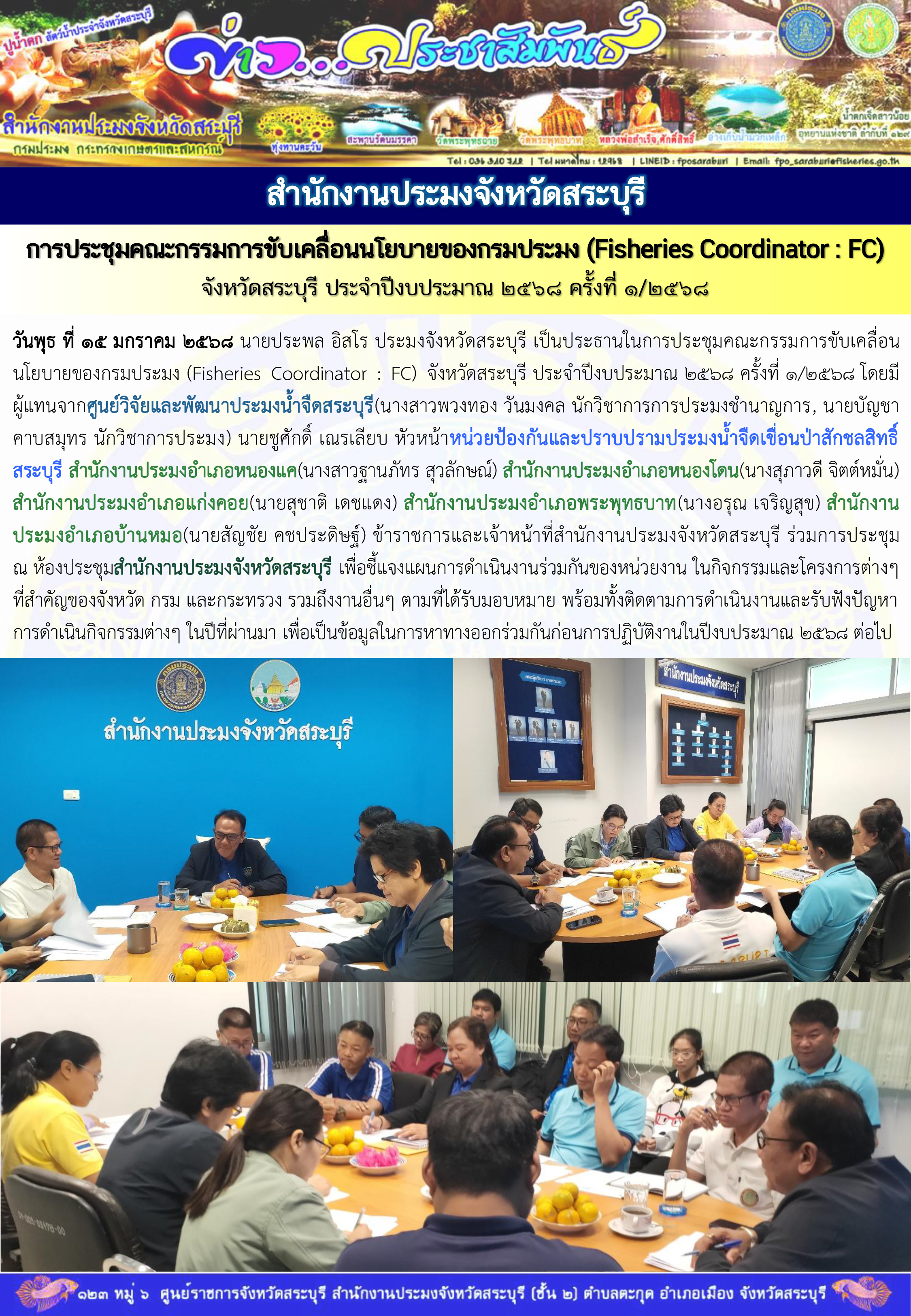 การประชุมคณะกรรมการขับเคลื่อนนโยบายของกรมประมง (Fisheries Coordinator : FC) จังหวัดสระบุรี ประจำปีงบประมาณ 2568 ครั้งที่ 1/2568
