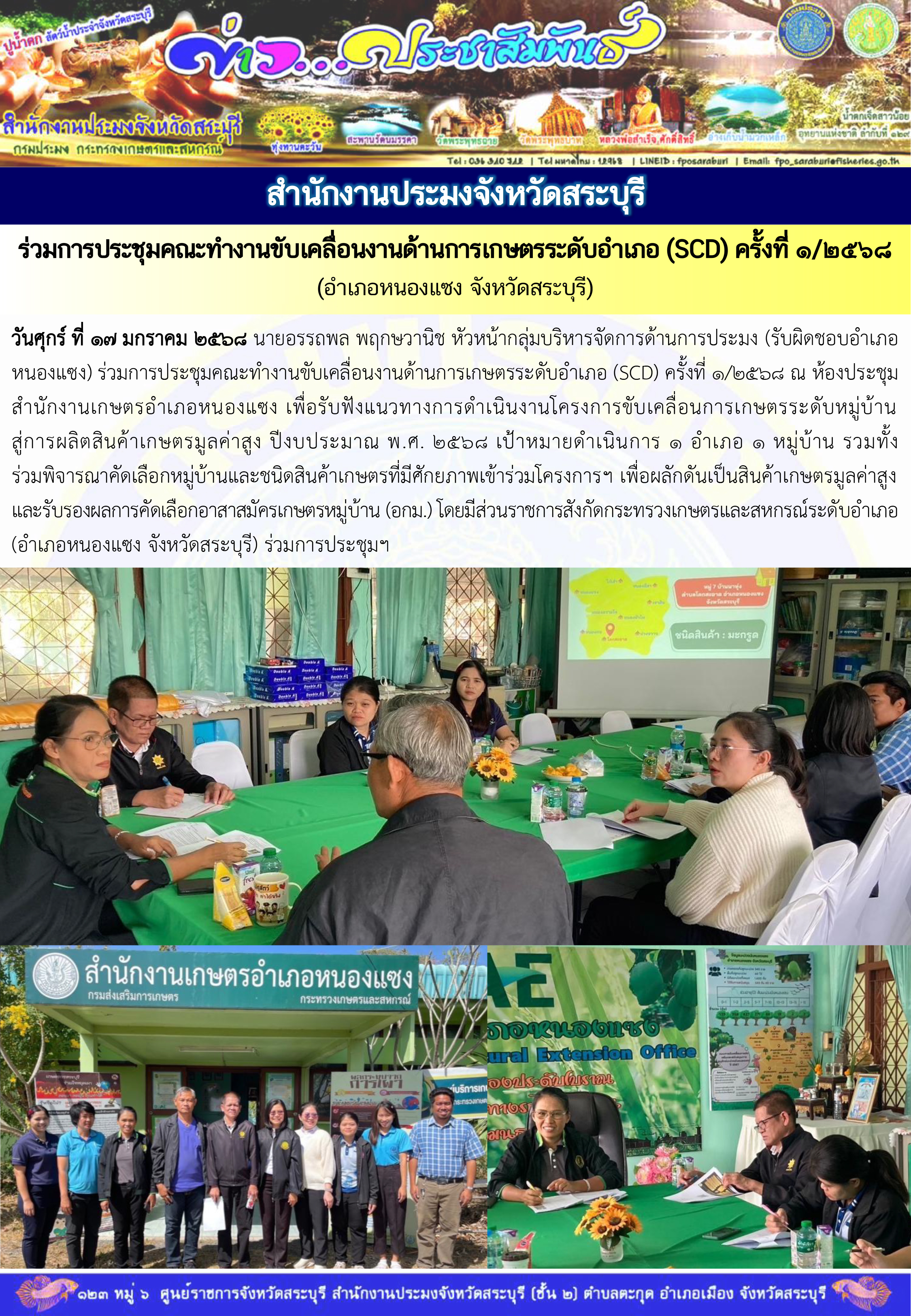 สำนักงานประมงจังหวัดสระบุรี ร่วมการประชุมคณะทำงานขับเคลื่อนงานด้านการเกษตรระดับอำเภอ (SCD) ครั้งที่ 1/2568 (อำเภอหนองแซง จังหวัดสระบุรี)