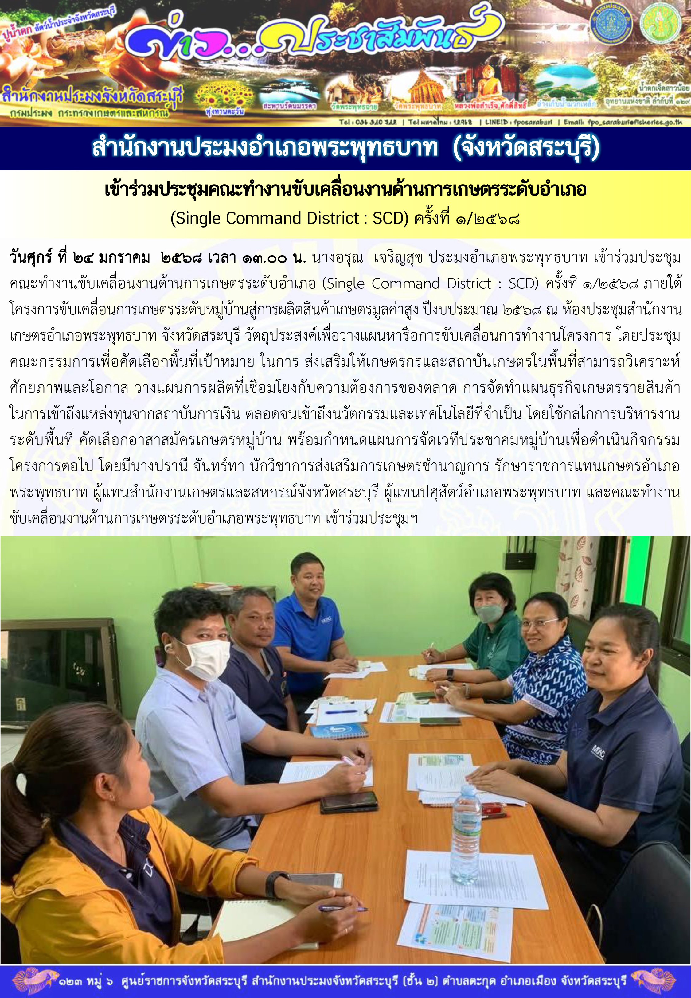 สำนักงานประมงอำเภอพระพุทธบาท เข้าร่วมประชุมคณะทำงานขับเคลื่อนงานด้านการเกษตรระดับอำเภอ (Single Command District : SCD) ครั้งที่ 1/2568